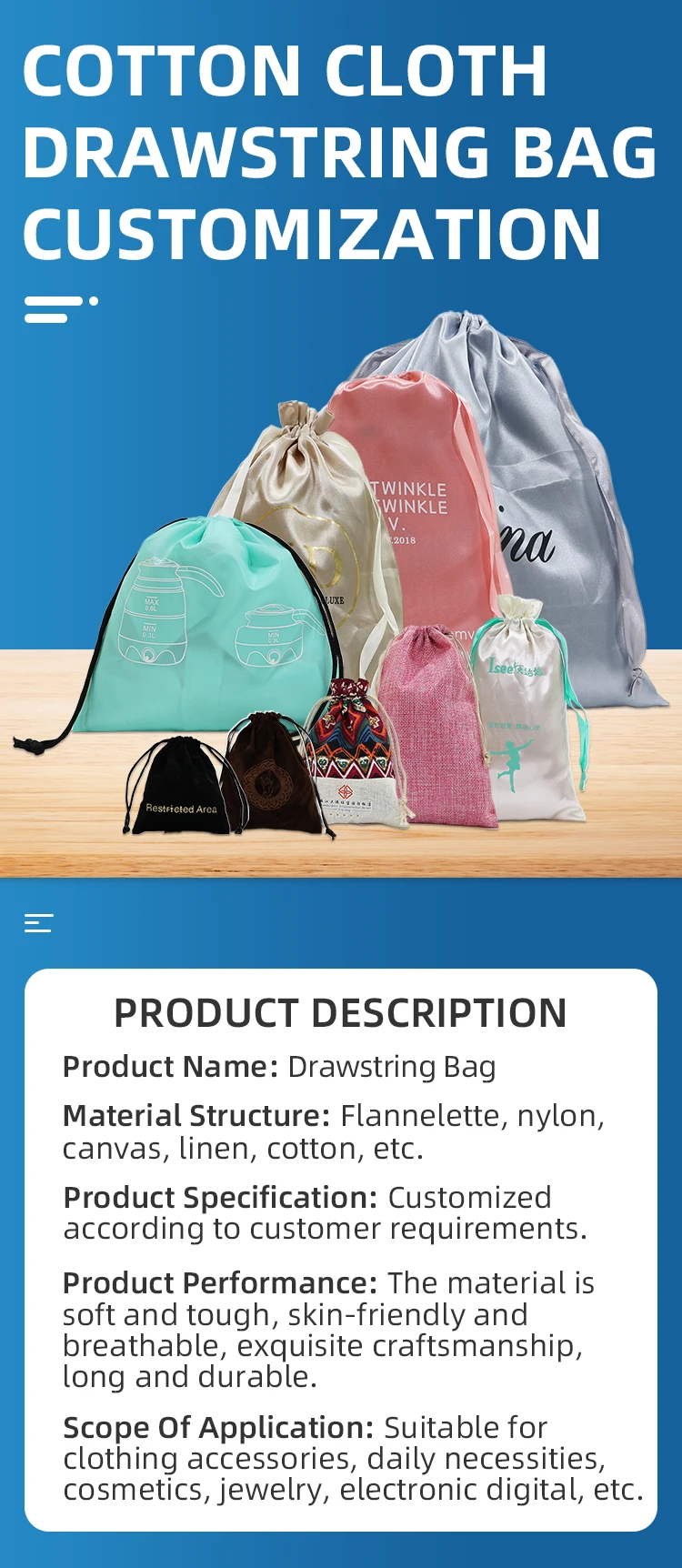 product name | Wholesale Custom Packaging Cotton Satin Velvet Drawstring Bags for Gift Jewelry Packaging |