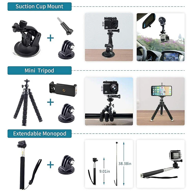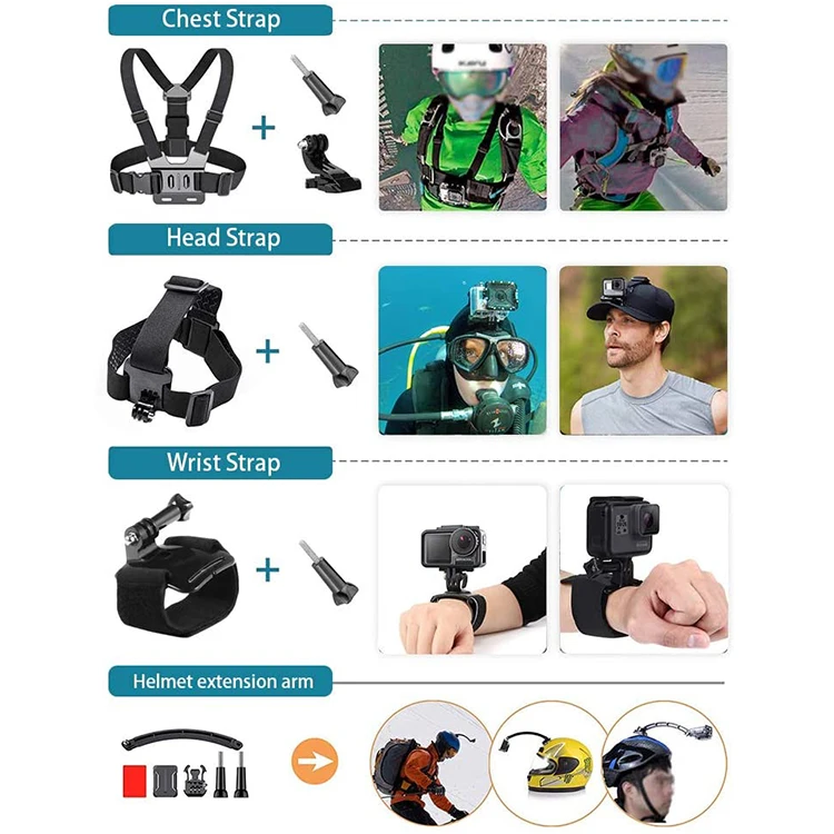 Junnx Cameras Accessories kit 50 in 1 Mount Head Chest Strap Suction Cup mount Floating hand Grip for GoPro Hero 8 7 6 6 5 4