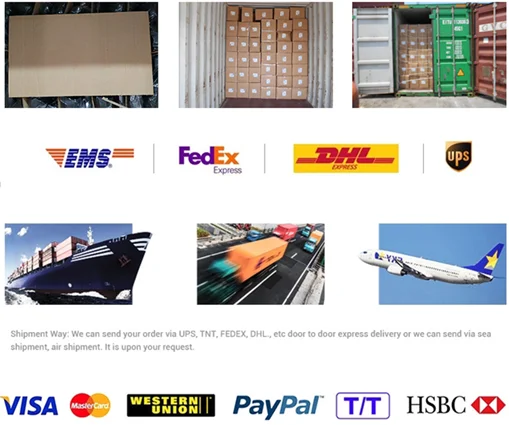 DELIVERY AND SHIPPING | 1. Ship by Express Company like DHL, FEDEX, TNT, UPS etc (7-14 working days) 2. China Post Air Mail (About 15-35 days according to your location) 3. Sea shipment (About 20-30 days) 4. Please discuss with us for the appropriate delivery methods PAYMENT RECOMMEND to pay thru Alibaba, but all payment can be accepted, CONTACT US for detail |