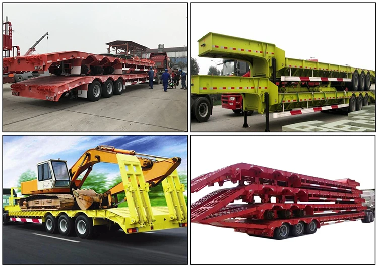 Low bed semi-trailer is usually used to transport heavy vehicles (e.g., tractors, buses and special vehicles, etc.), rail vehicles, mining machine forestry machinery,agricultural machinery, such as excavators, bulldozers, loaders, paver, cranes, etc.) and other heavy goods, its center of gravity is lower, the better the stability and safety, transport overheight cargo and overhead obstacles by the stronger the ability.
