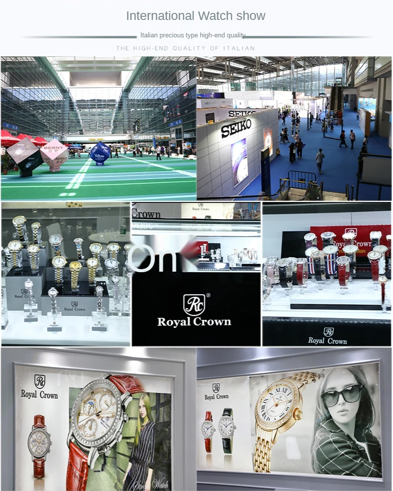 Answer: Hello, this is a fashion jewelry watch brand from Italy. The brand name is "Royal Crown". The watch is inlaid with zircons, all inlaid by hand, which is the same as the inlay process of diamonds.