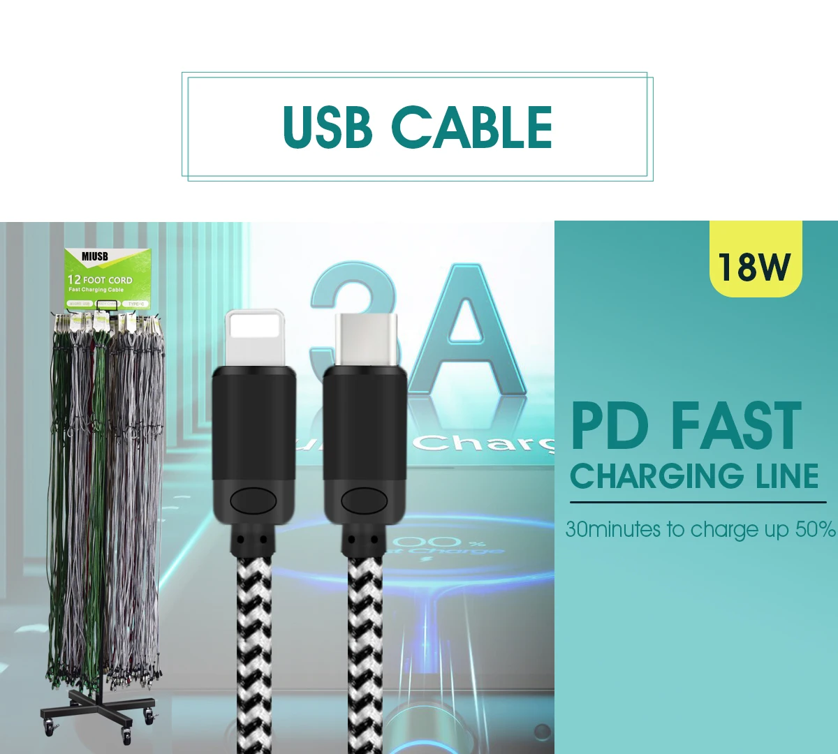 2020 Free Shipping Multiple 1M/6ft/10ft USB Micro Cords Type C Fast Charging Data Cable For Iphone 12 Charger Cable in Display