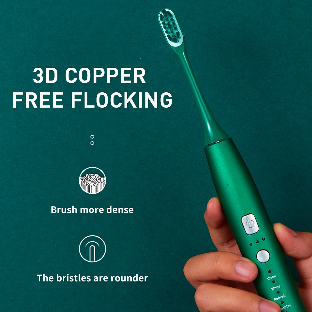 Material of brush head | High-density 3D metal-free flocking technology, round finish at the top |