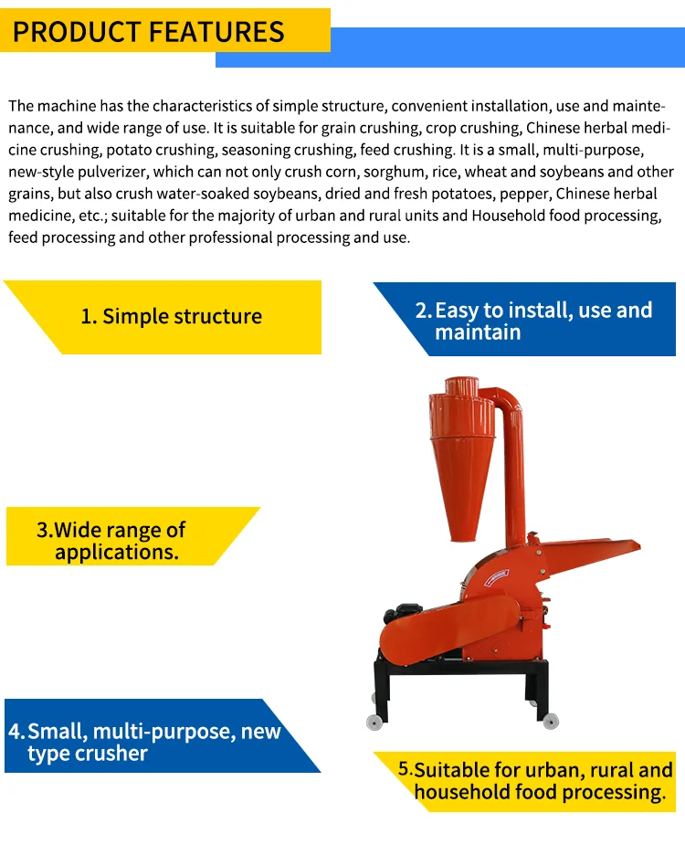 1. Used for crushing corn, wheat, soybeans, rice, bean curd, etc.