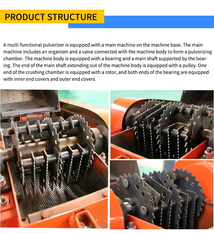 2. It is used to crush fibrous rod-shaped materials such as corn stalks, cotton stalks, peanut seedlings, weeds, branches, etc. The fineness of the crushed materials can reach 2mm or less.