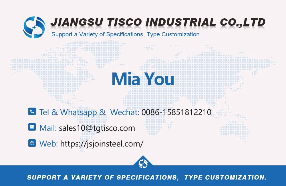 Цзянсу TiscoIndustrial Co.,Ltd была основана в 2008 году. После того, как12 летБыстрого развитияJstiscoСтала современным комплексным предприятием по обслуживанию стали, которое специализируется на обработке, продажах и технических услугах в области продуктов из нержавеющей стали.JstiscoСпециализируется на различных видахТруба из нержавеющей стали,Пластина,Катушка,Бар,Трубопроводная арматура,Изделия из высоконикелевой стали,Высокая термостойкость продуктовИ другиеМы работаем по OEM и ODM сервис.