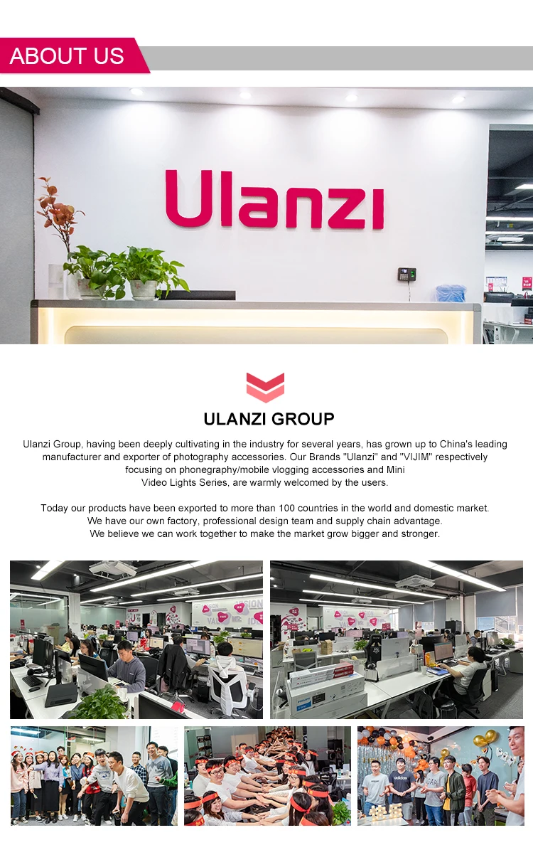 A: We are manufacturer of Ulanzi products. We have been manufacturing and exporting photography accessories for more than 5 years. We also have strong R&D resources, developing many functional products with patents.