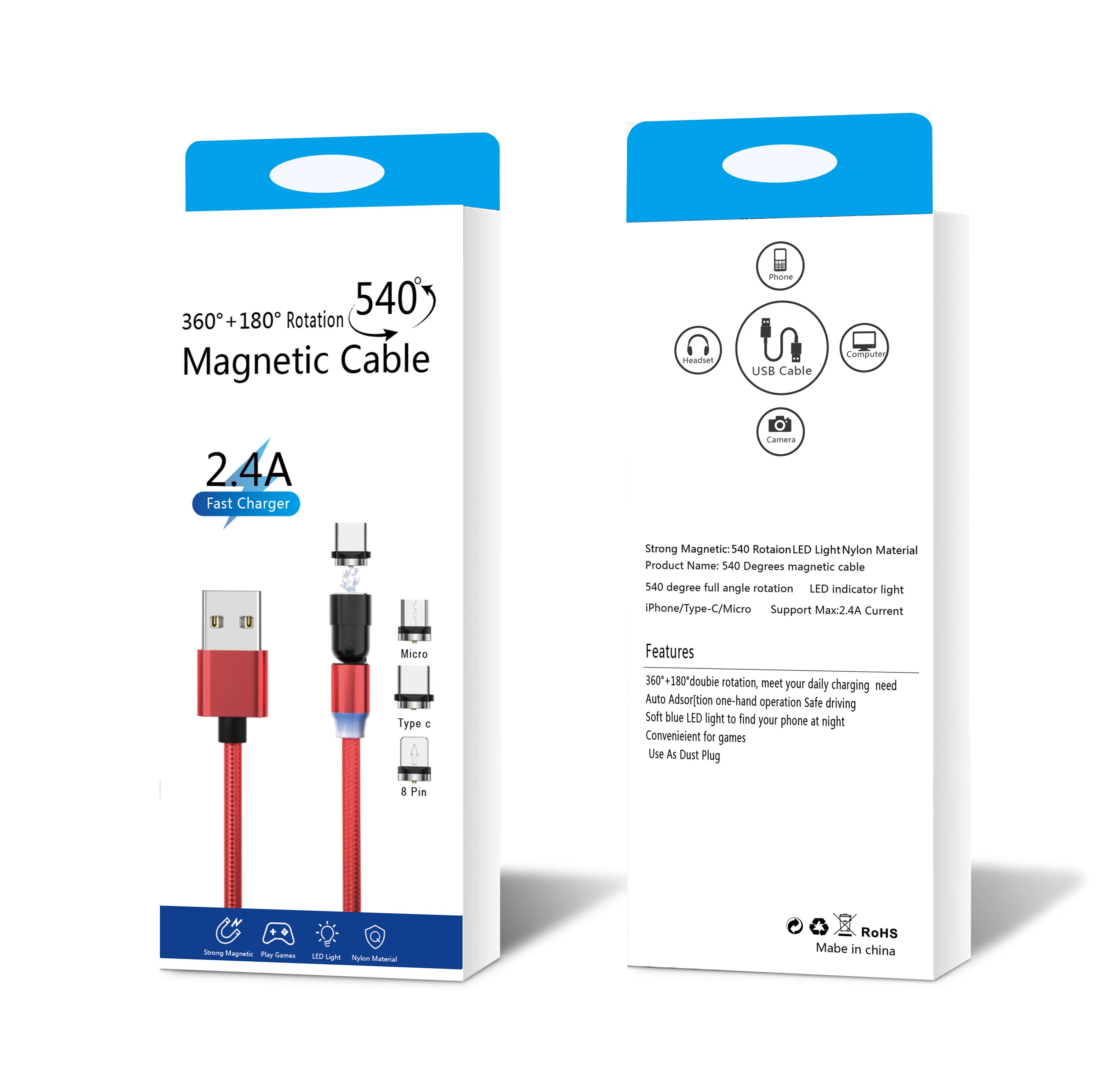 540 degree rotating magnetic cable