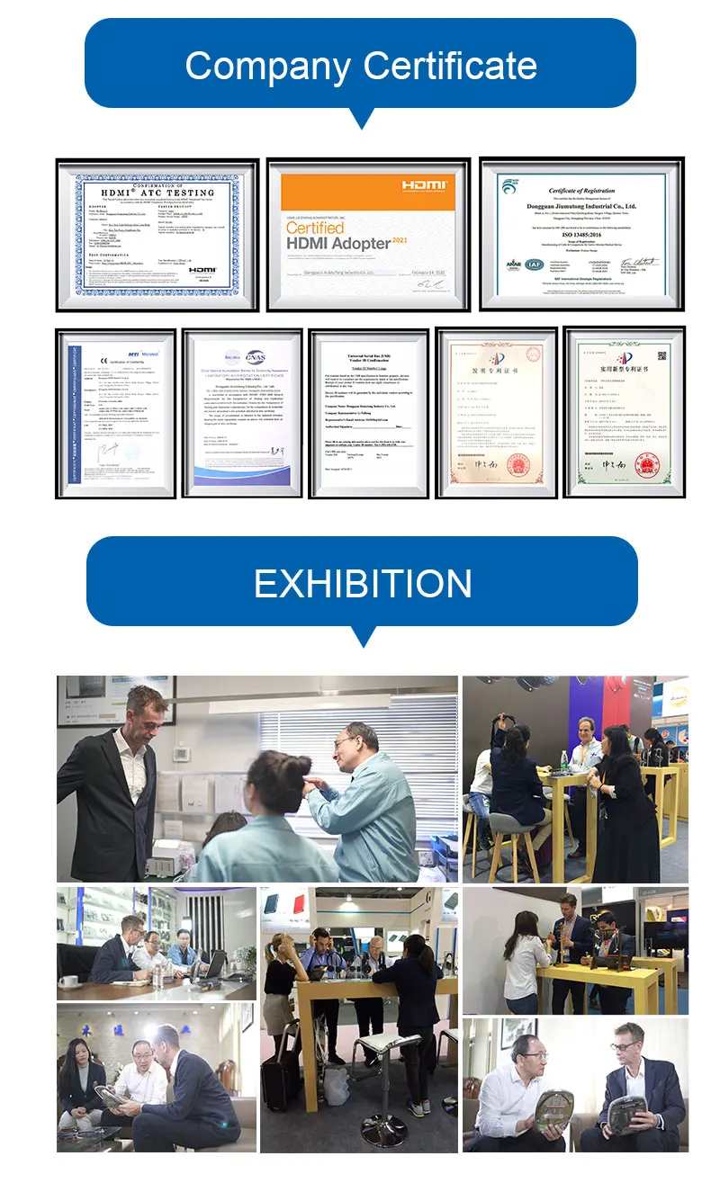 In 2006, Dongguan jmto Industrial Co., Ltd. was established with a registered capital of 50 million RMB. We have 14 years of production experience on various of USB / HDMI / TYPE-C /Audio cables, HUB, chargers, earphones. Mainly customers, such as Monster, Bull, WD, Skyworth TV, TOSHIBA, MOLEX, VOLUZ, etc. JMTO is a national high-tech enterprise with strong R&D and design capabilities and a number of product invention patents, ensuring us constantly launching new products and serving customers with customized solutions. With a national testing laboratory make sure the product meets different requirements from different customers. Our automated production are very mature and more than 30 sets of automation equipment with a daily output of 150,000 pieces We are constantly developing new products and learning new technologies. I hope to help more customers solve the communication connection problem, and also look forward to more friends from all over the world choosing us, guiding us, and letting us grow with you!