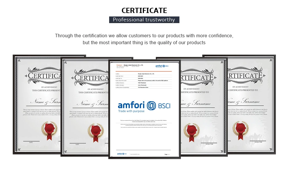 A: We have CE RoHS, CCC, ISO9001