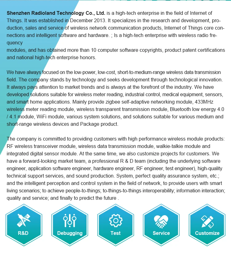 RL-CC2540 module is a cost-effective, low-power, true system-on-chip (SoC) for BLE low energy applications. It enables robust BLE master or slave nodes to be built with very low total bill-of-material costs. The CC2540 combines an excellent RF transceiver with an industry-standard enhanced 8051 MCU, in-system programmable flash memory, 8-KB RAM, and many other powerful supporting features and peripherals. The CC2540 is suitable for systems where very low power consumption is required. Very low-power sleep modes are available. Short transition times between operating modes further enable low power consumption.