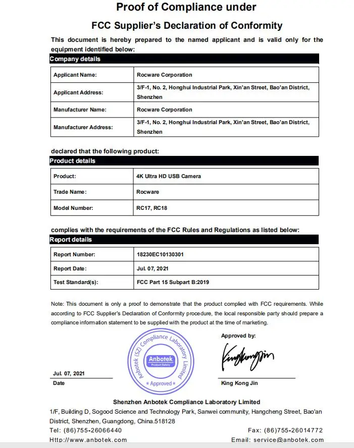 USB Video Communication Protocol | UVC 1.1 | |