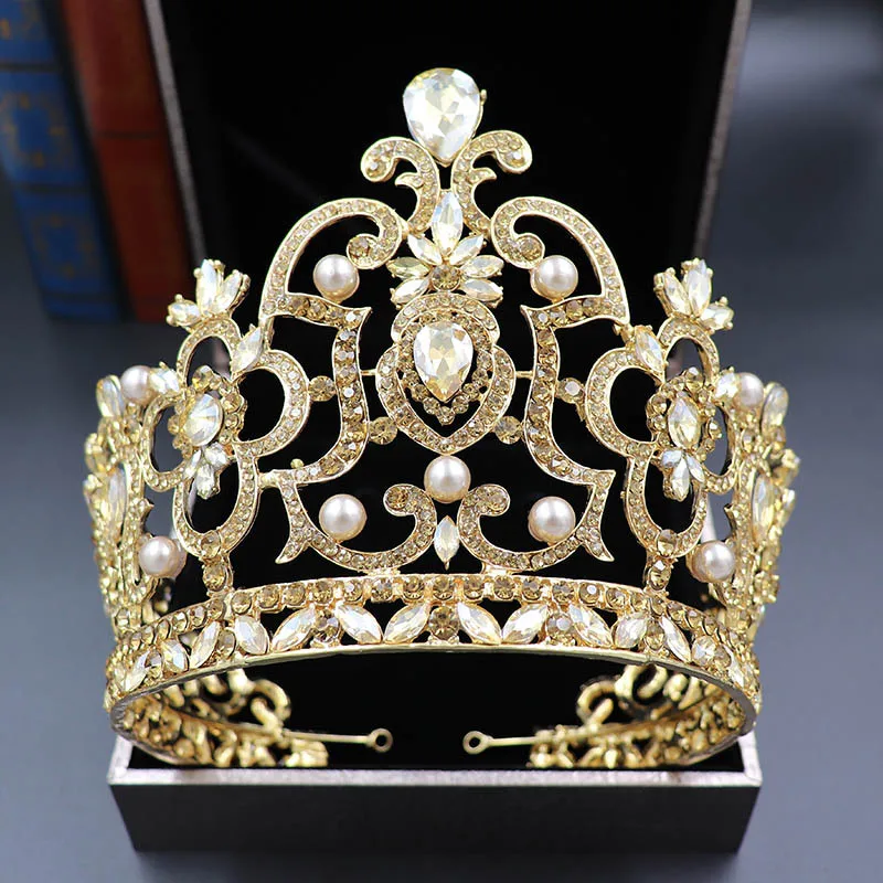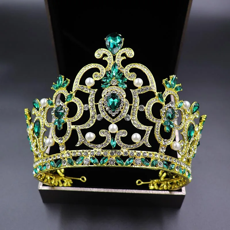 Роскошная большая Тиара для взрослых конкурса красоты Золотая Шампанская синяя зеленая КАПЛЕВИДНАЯ белая корона со стразами вечеринки