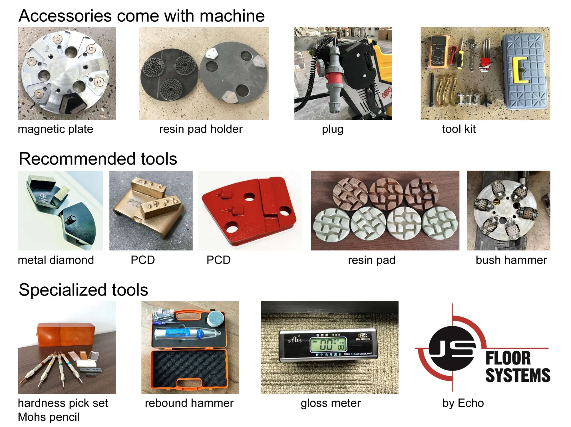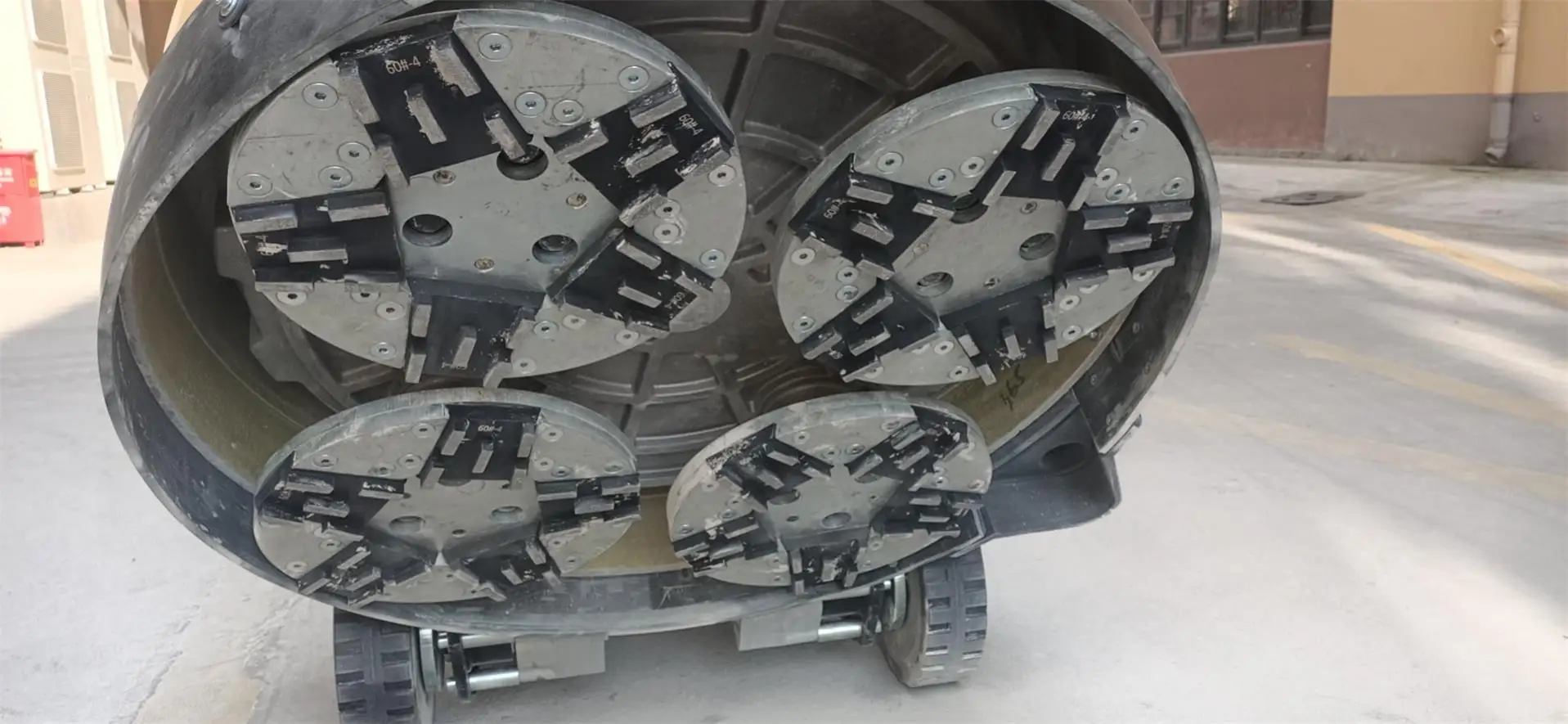 2, Strong mechanical construction fit to rough floor and grit 6#, PCD grinding.