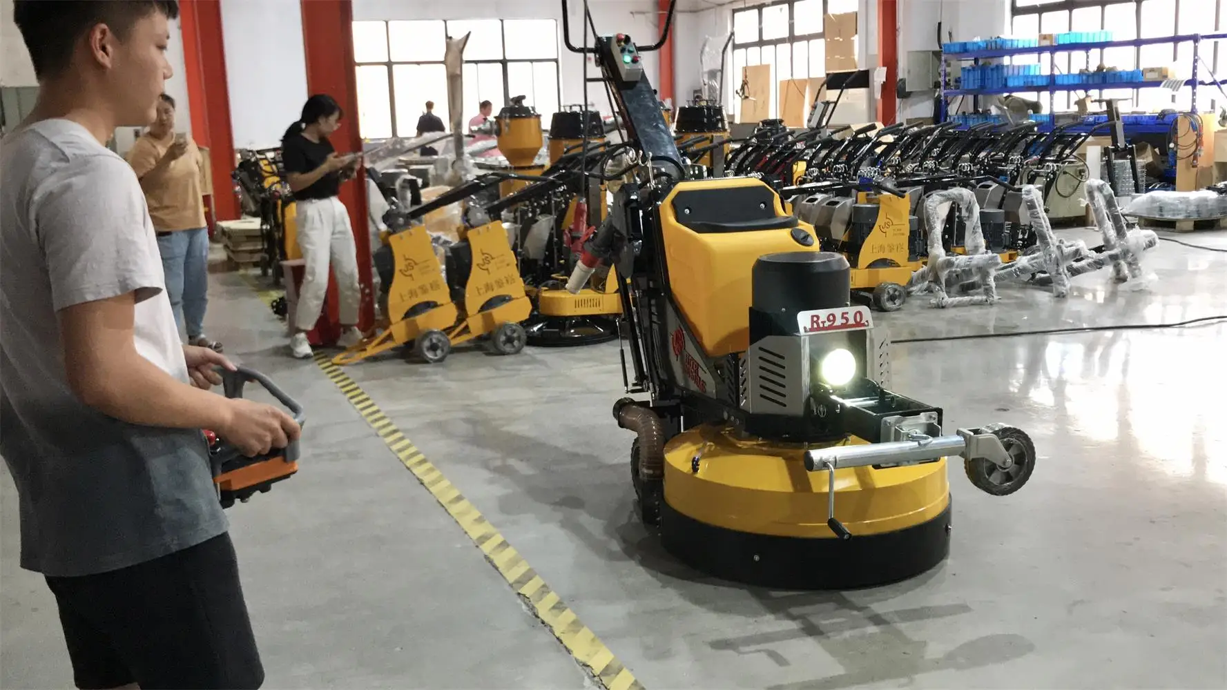 R950 is auto radio controlled planetary concrete grinder. Machine can auto polish and grind at a constant speed and minimizes the risk of operators' mistakes going too slow or too fast. It can significantly save both your time and labor cost.