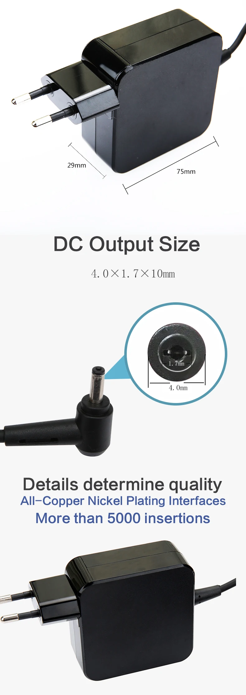 AC specification | Three plug 3PIN C6 2PIN C8 | Device type | Desktop adapter | |||||||||||||