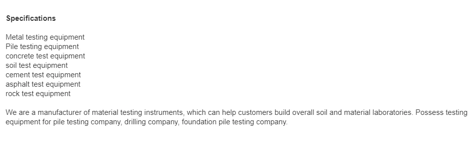 1. who are we?We are R&D and manufacturer with two factories based in Hebei, China. Since 2010, we have been producing testing equipment for pile, concrete, soil, metal asphalt...