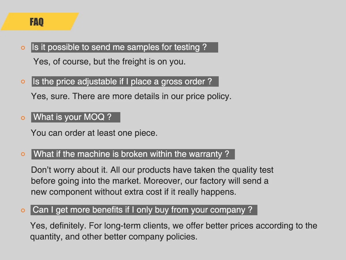 Widely acknowledged product high quality in the field, almost without after-sales problems and issues in the previous business with our customers all over the world