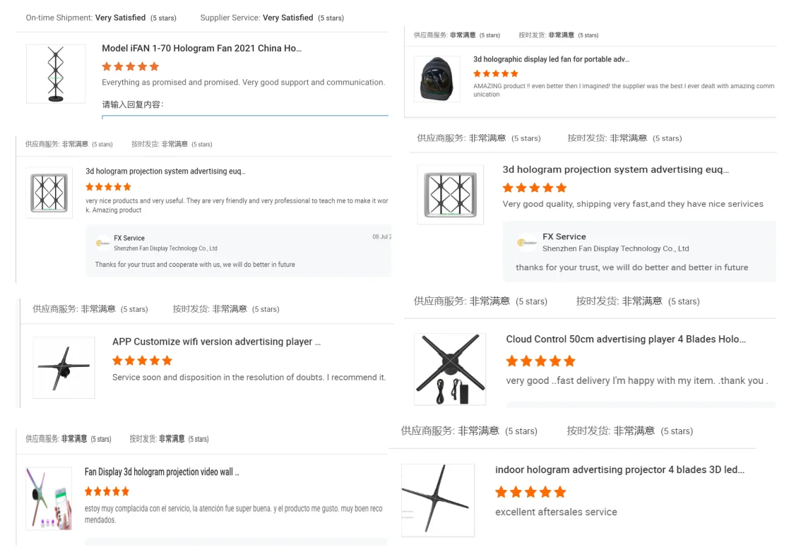 A5: We have LED displays with accessories, Transparent LED displays and Hologram fan display