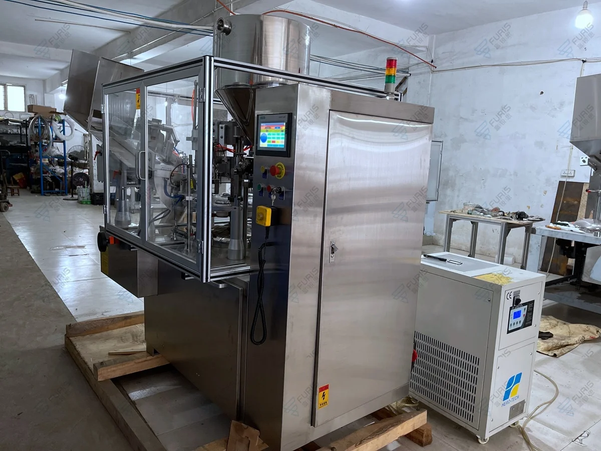 6.No tube no filling,Sealing temperature adopt (Leister hot air gun) inside heating for the tail of tube and cooling device for