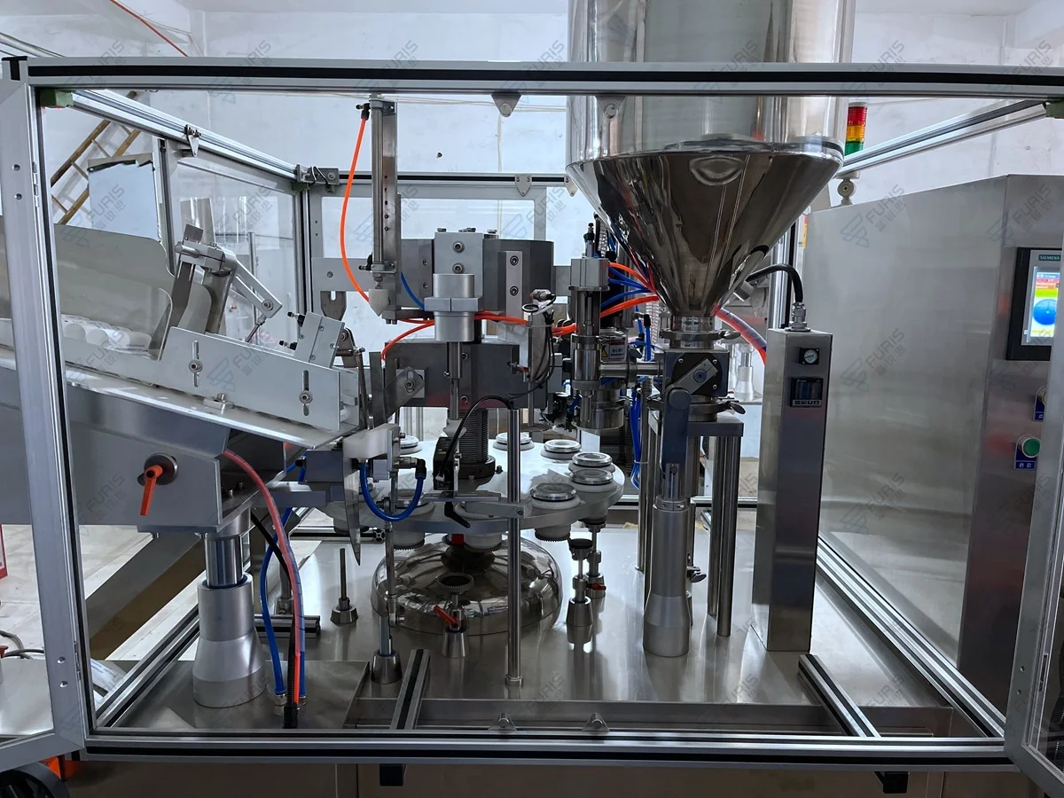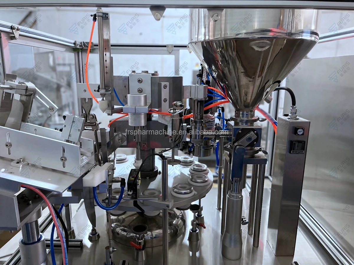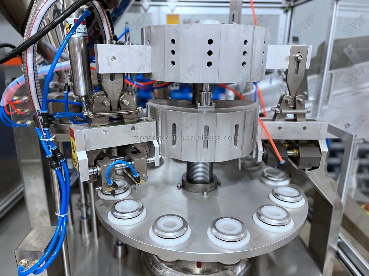 5.Filling nozzle enters tube inside to fill.As it fills it will moves up and prevent material from over flowing and spilling.