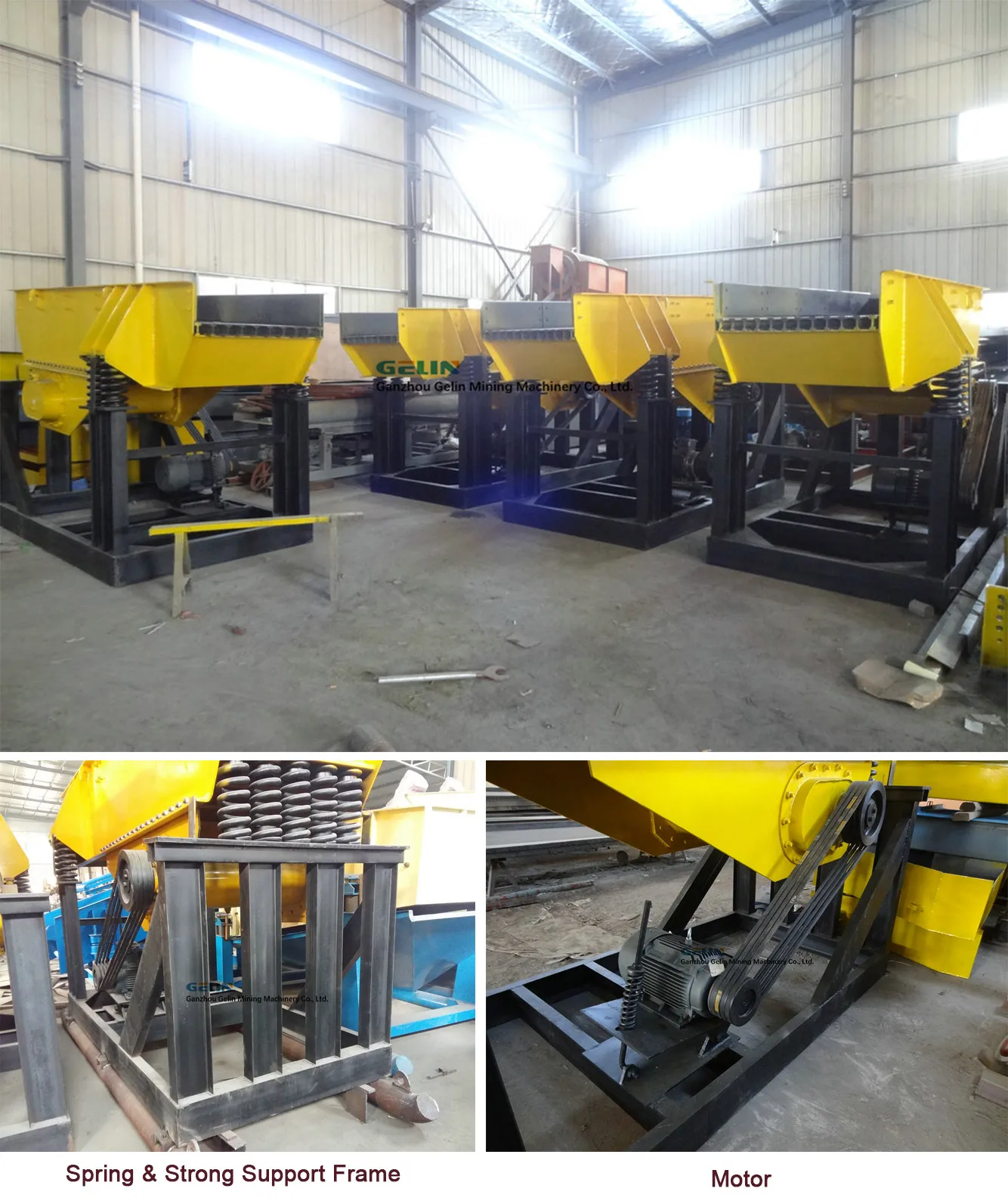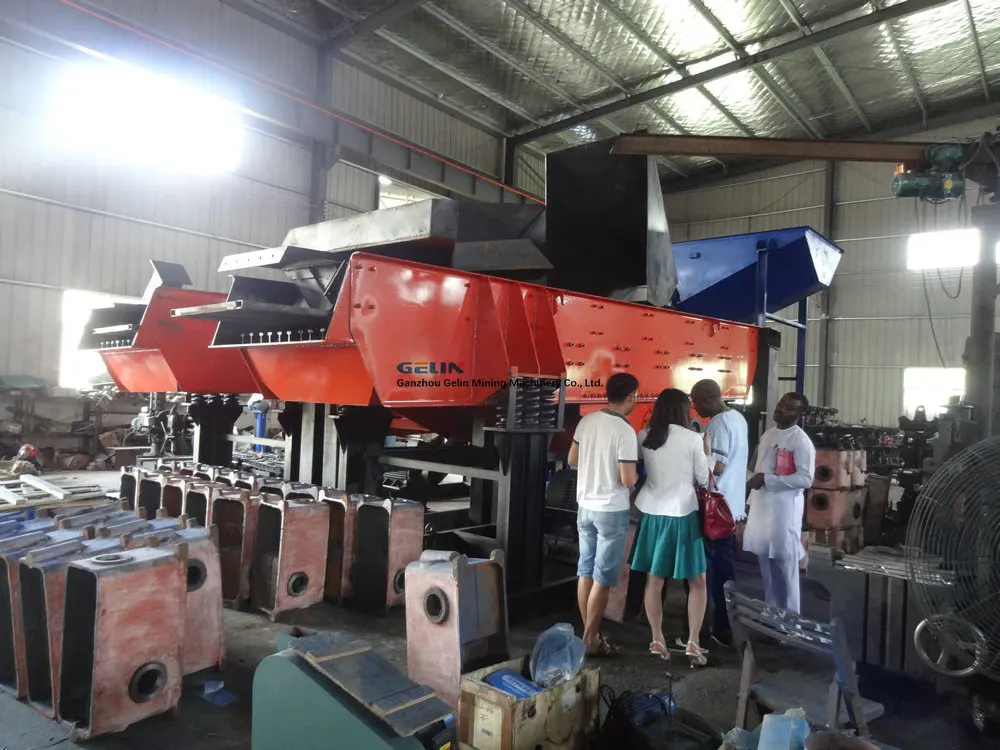 The vibrating feeder electromotor drives the eccentric block of the exciter to rotate with high speed through the v-shaped belt. The eccentric block can produce big eccentric force, and the exciting screen box will do circular motion with certain amplitude.The materials on the slant screen will be influenced by the impulse transmitted from the screen box and do continuous throwing motion, and the materials smaller than the screen hole will go through the screen, thus realizing classifying. the vibrating feeder is widely used for mining plant,stone crushing plant,sand making plant,etc.