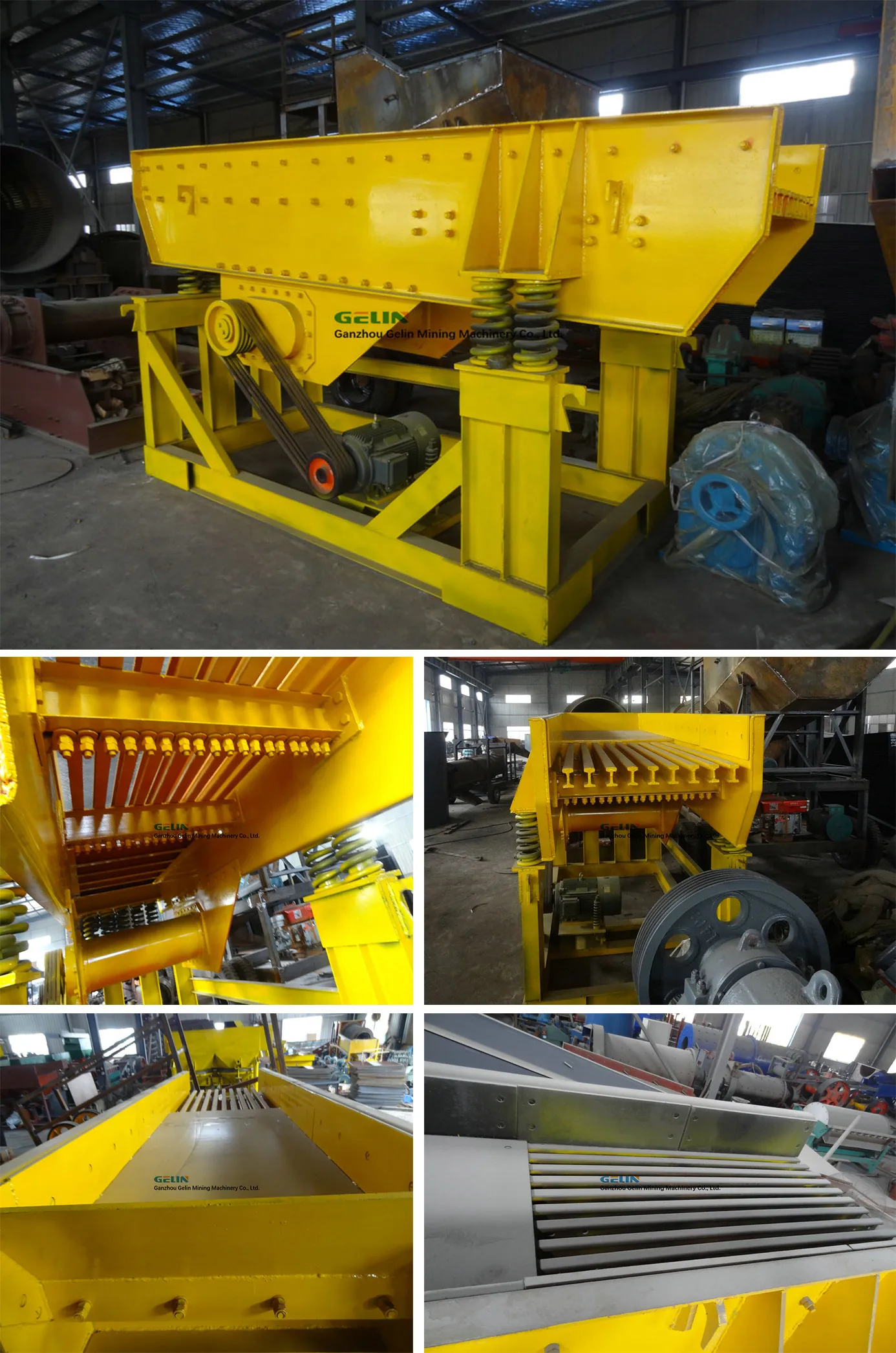 Vibrating Feeder/Vibrating Grizzly Feeder/Shaker Feeder is mainly used to feed materials evenly and continuously into belt conveyor, bucket elevator, screening and crushing equipment before primary crusher, also used for screening fine materials to increase the processing capacity of crusher.The feeding amount can be adjusted flexibly to achieve centralized control and automatic control in the production process. It is applied to crushing and screening production lines on crushing site,in mining,metallurgy,building material ,chemistry,mineral processing,and coal industries.
