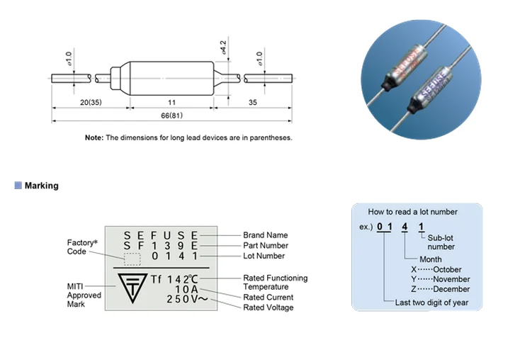 The SF type is a thermal link based on a one-shot operation principle and prevents electrical appliances from catching fire due to