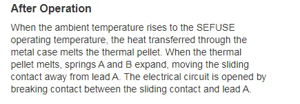 overheating. It uses an organic thermo-sensitive material inside a metal case and is able to operate in electric circuits with