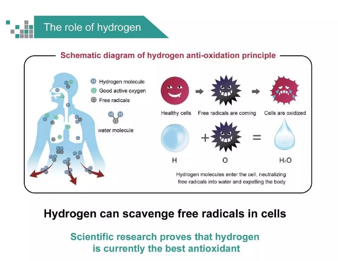 Hydrogen Benefits for Human Body: The modern medical science thinks that The decay is the process of acidification of matter(oxidation).absorb O2, drinking and smoking, environmental pollution etc could produce oxygen free radicals in human body.