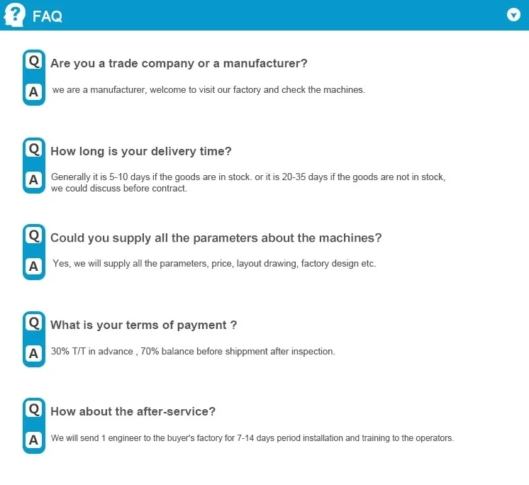 Due to our good credit and service, , we have made great achievements in the past years. We have established long-term business relations with many customers and some of our overseas customers have appointed us to be their purchase agency in China. Our products are exported to many countries & areas. Besides machinery and equipment, we also supply production lines and turn key projects.