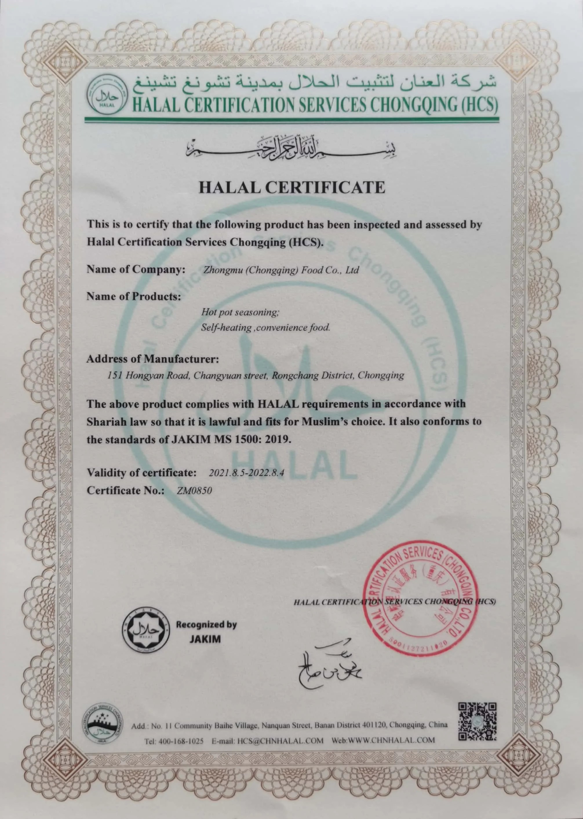 It can be guaranteed that the company produces in full compliance with Muslim teachings and regulations, and has obtained China’s domestic halal production license and Malaysia’s JAKIM international halal certification.