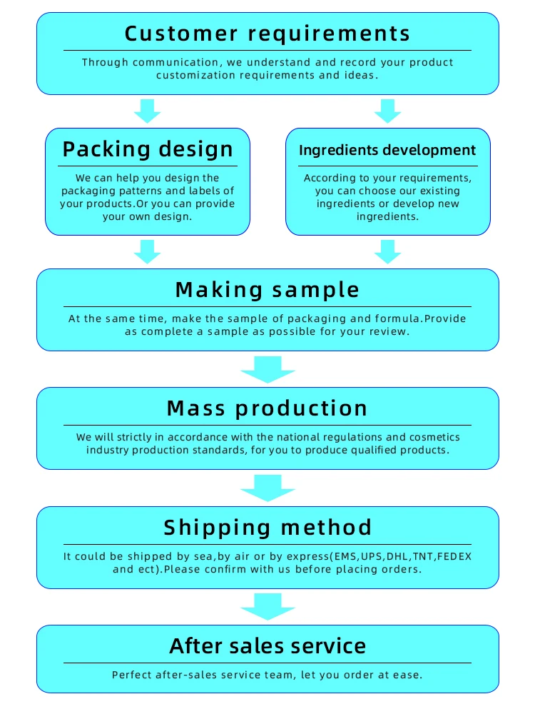 We provide OEM/ODM customized private labels, customized formulas and packaging, support sample services, factory direct sales prices, low MOQ, mass production, on-time delivery and provide perfect after-sales service.