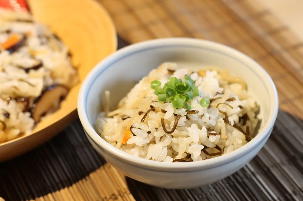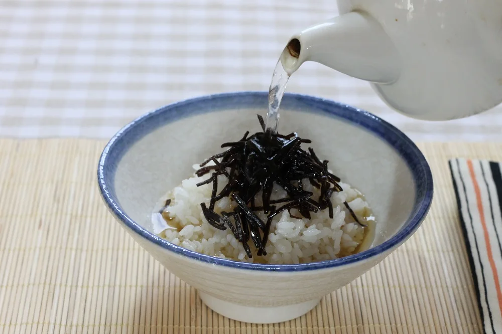 It can also be used as a seasoning for stir-fried vegetables, meat, etc. Put salted kelp on rice and pour tea over it.