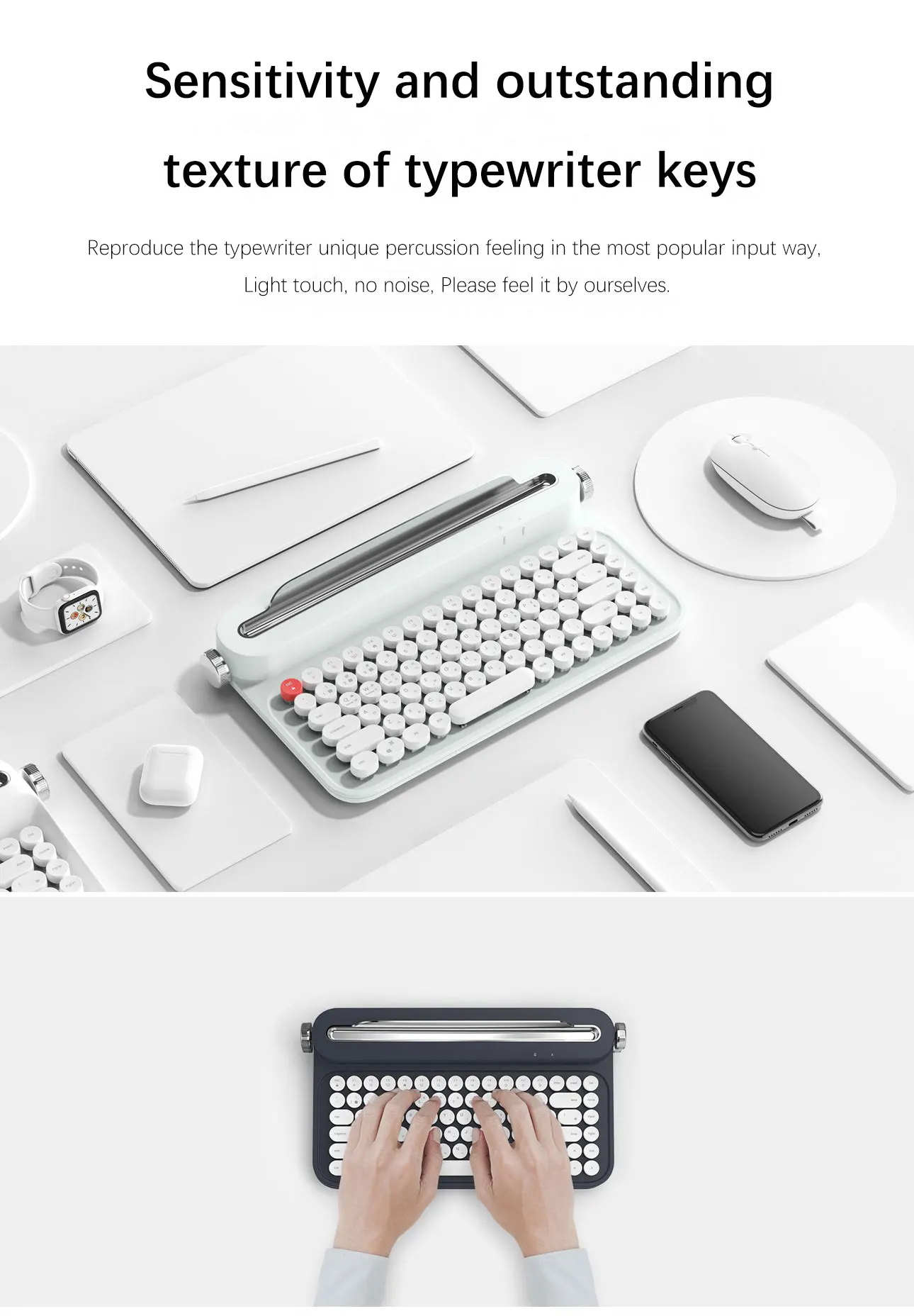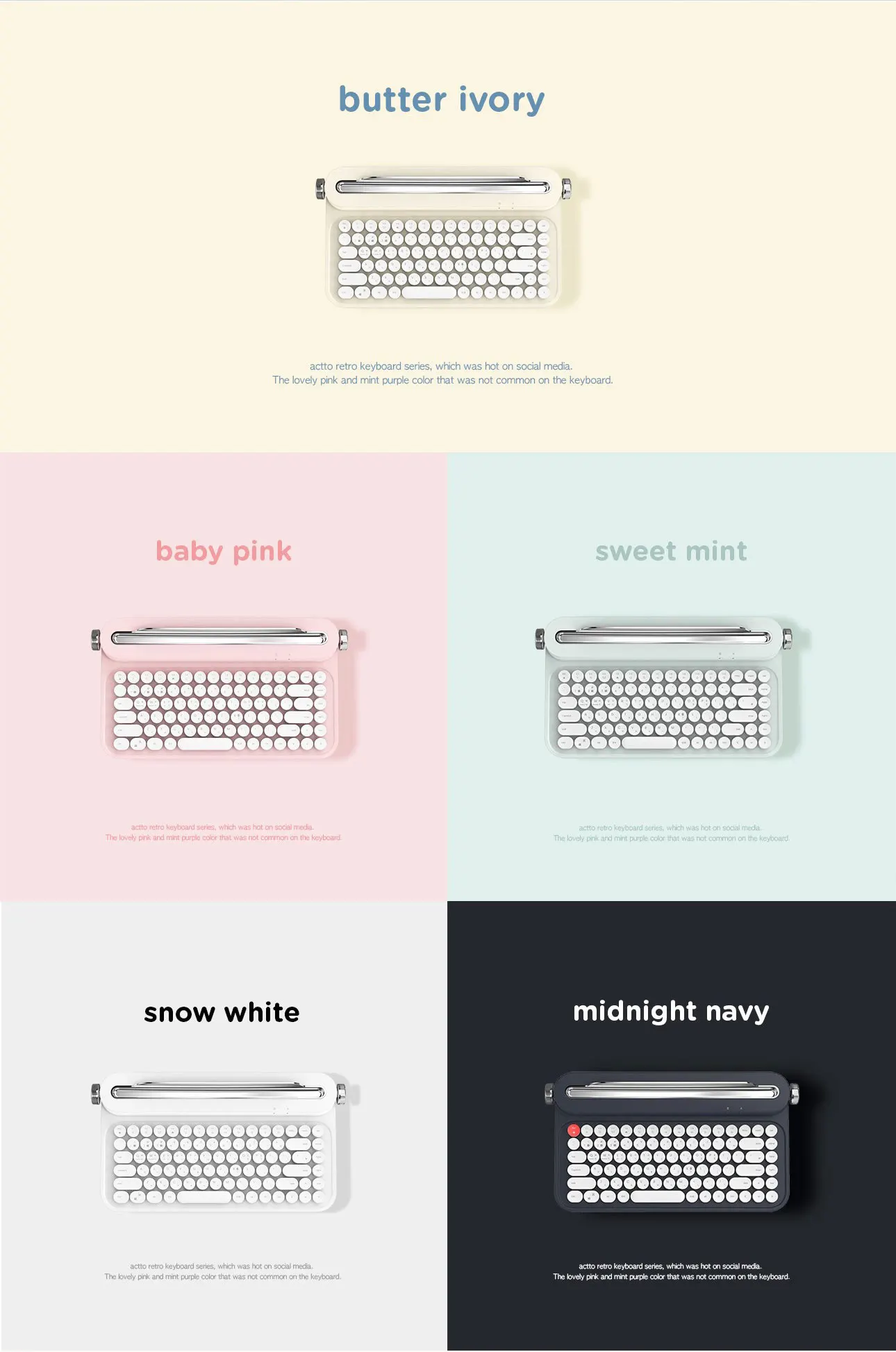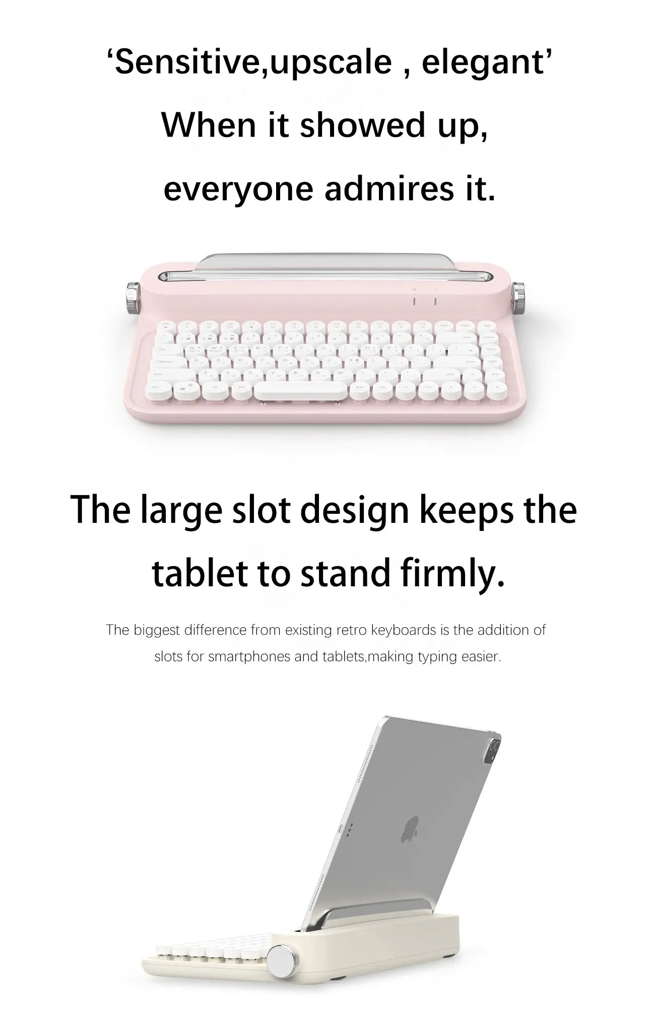 2021Good Design Award retro keyboard cute typewriter wireless for laptop tablet pc smartphone pink mini teclado