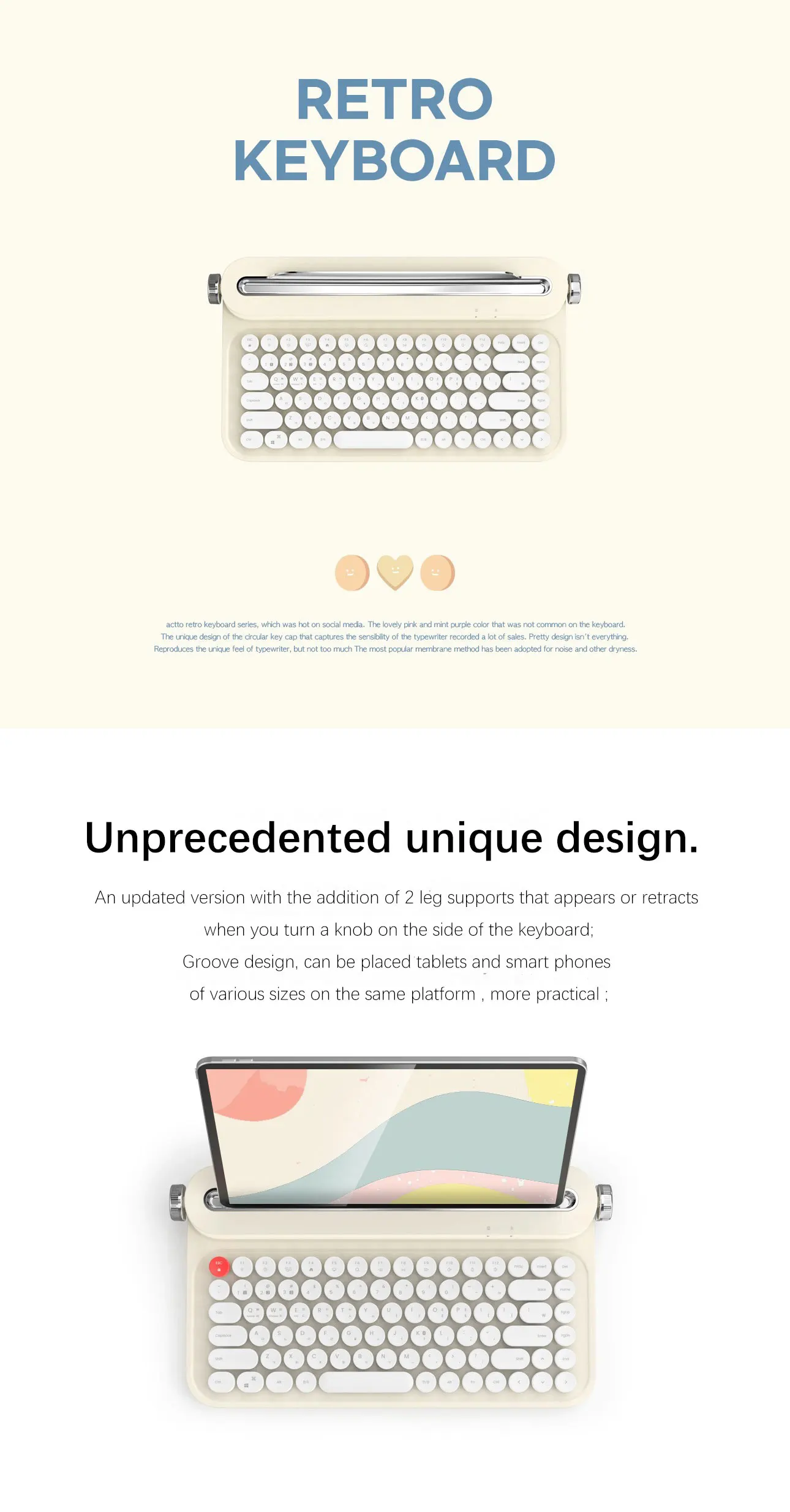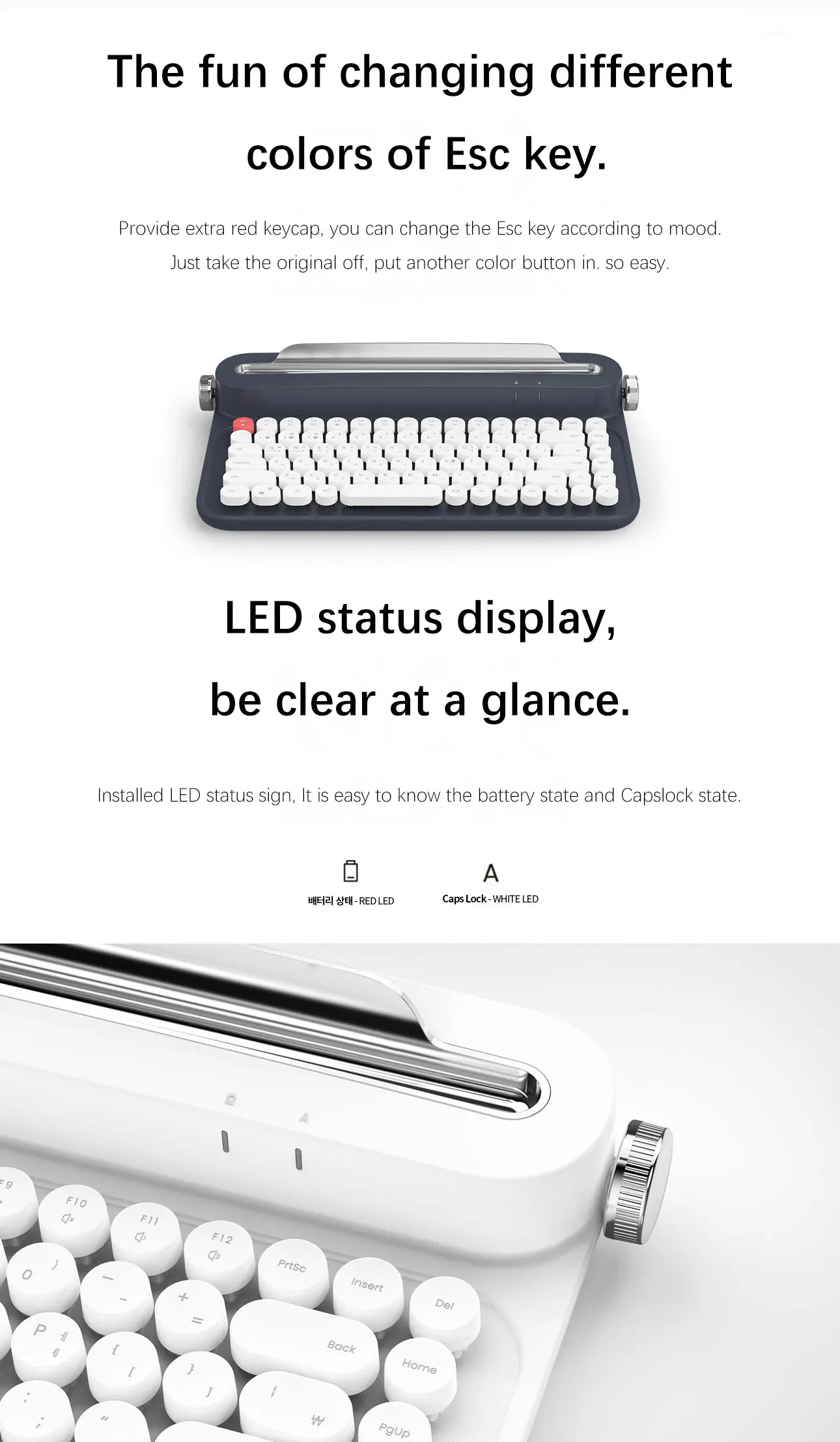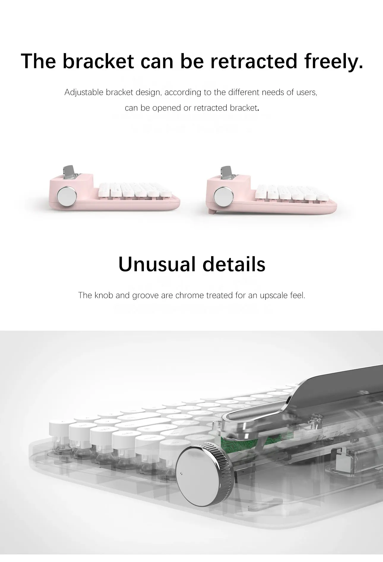 2021Good Design Award retro keyboard cute typewriter wireless for laptop tablet pc smartphone pink mini teclado