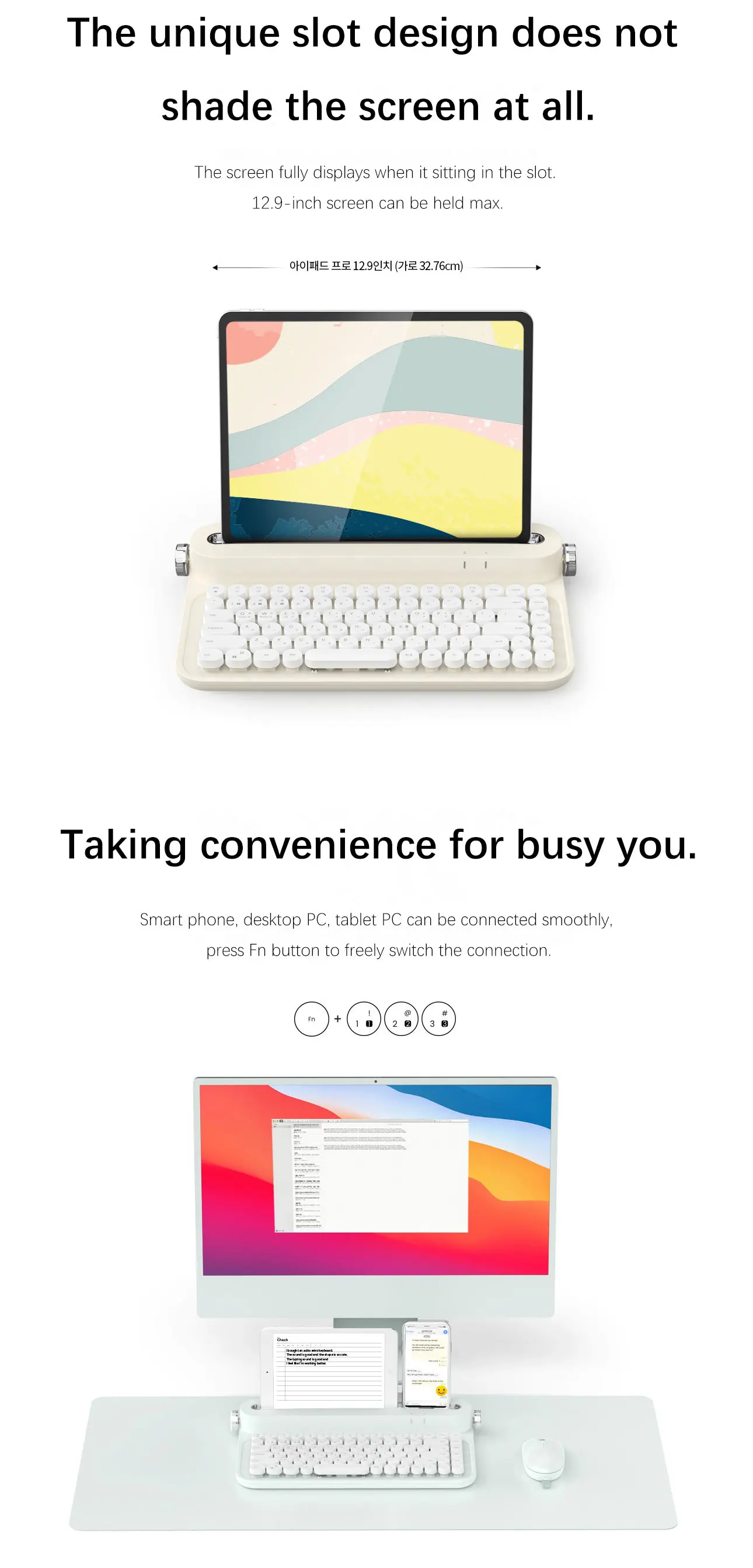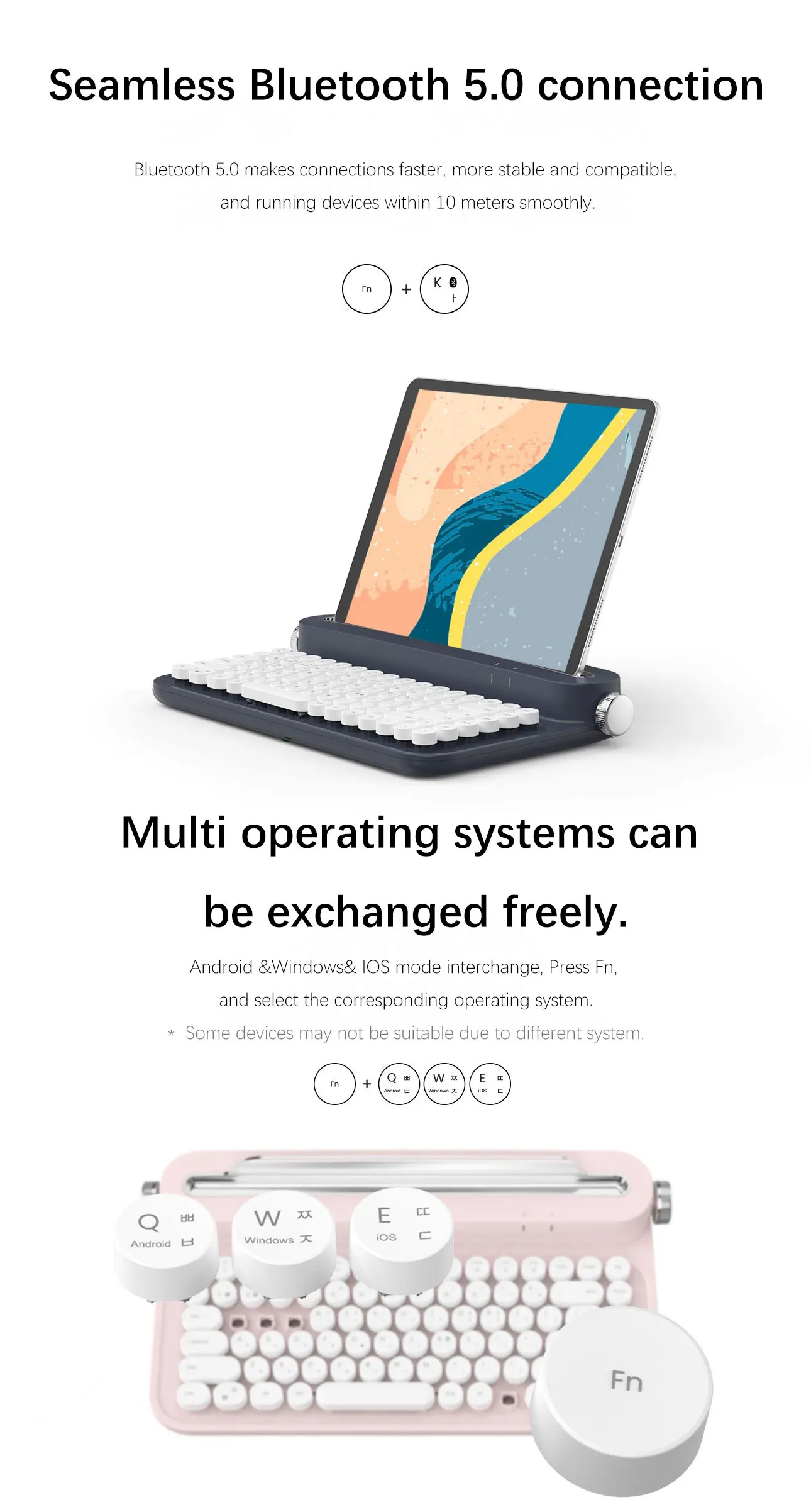 3, Smart phone, desktop PC, tablet can be connected smoothly. Press Fn button to freely switch the connection.