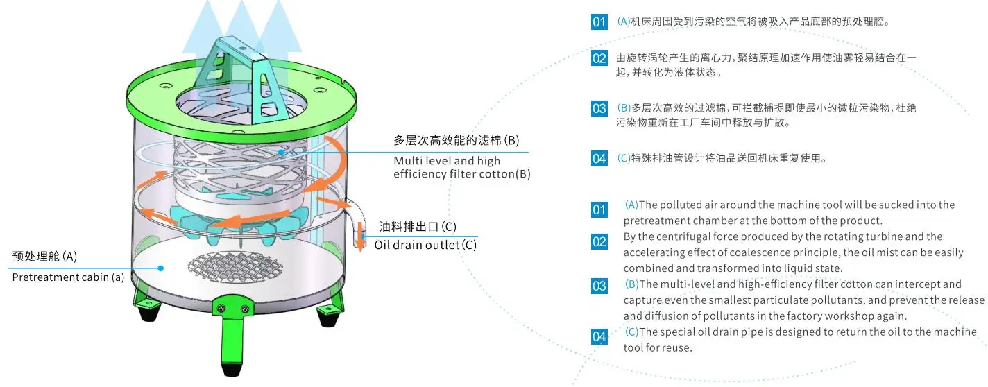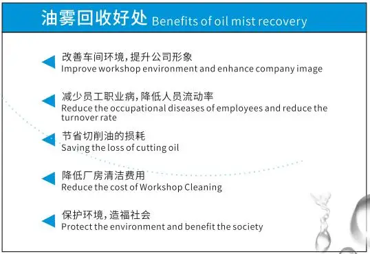 oil mist collector is suitable for CNC numerical control lathe, washing machine, Surface grinding machine, gear hobbing and milling machine and the slotting machine, vacuum pump, spray laboratory, electrical discharge machining, CNC machining center.