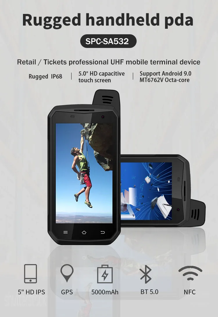 Features | 1.smart ruggedphone IP68 2.smartphone Android OS 9.0 3.Dual SIM card,5.0"HD capacity touch panel | |