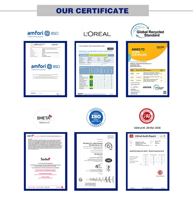 5.We have Audit & Certification: GRS, L'Oreal, LVMH, Sedex 4 Pillar, ISO9001-2015, BSCI,Disney(FAMA), Nestle.