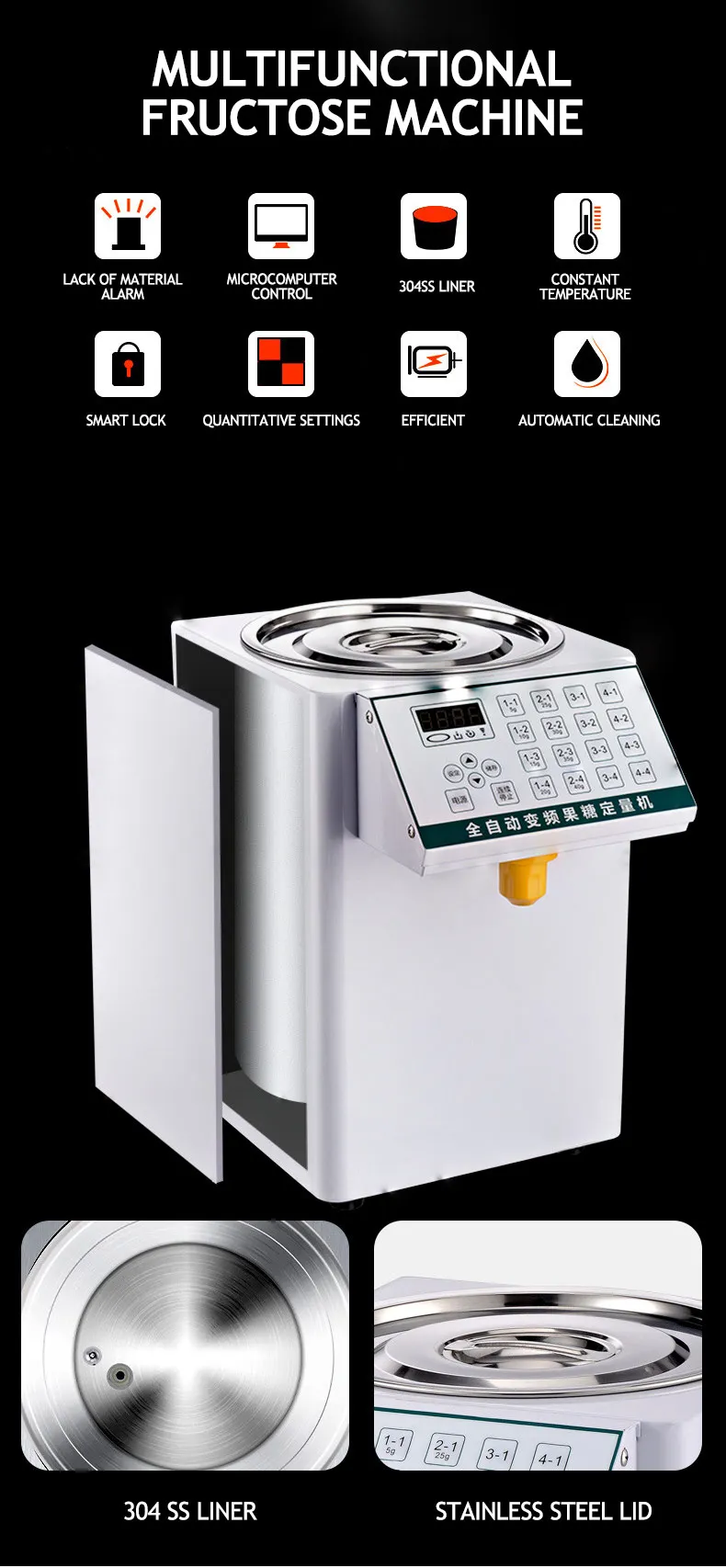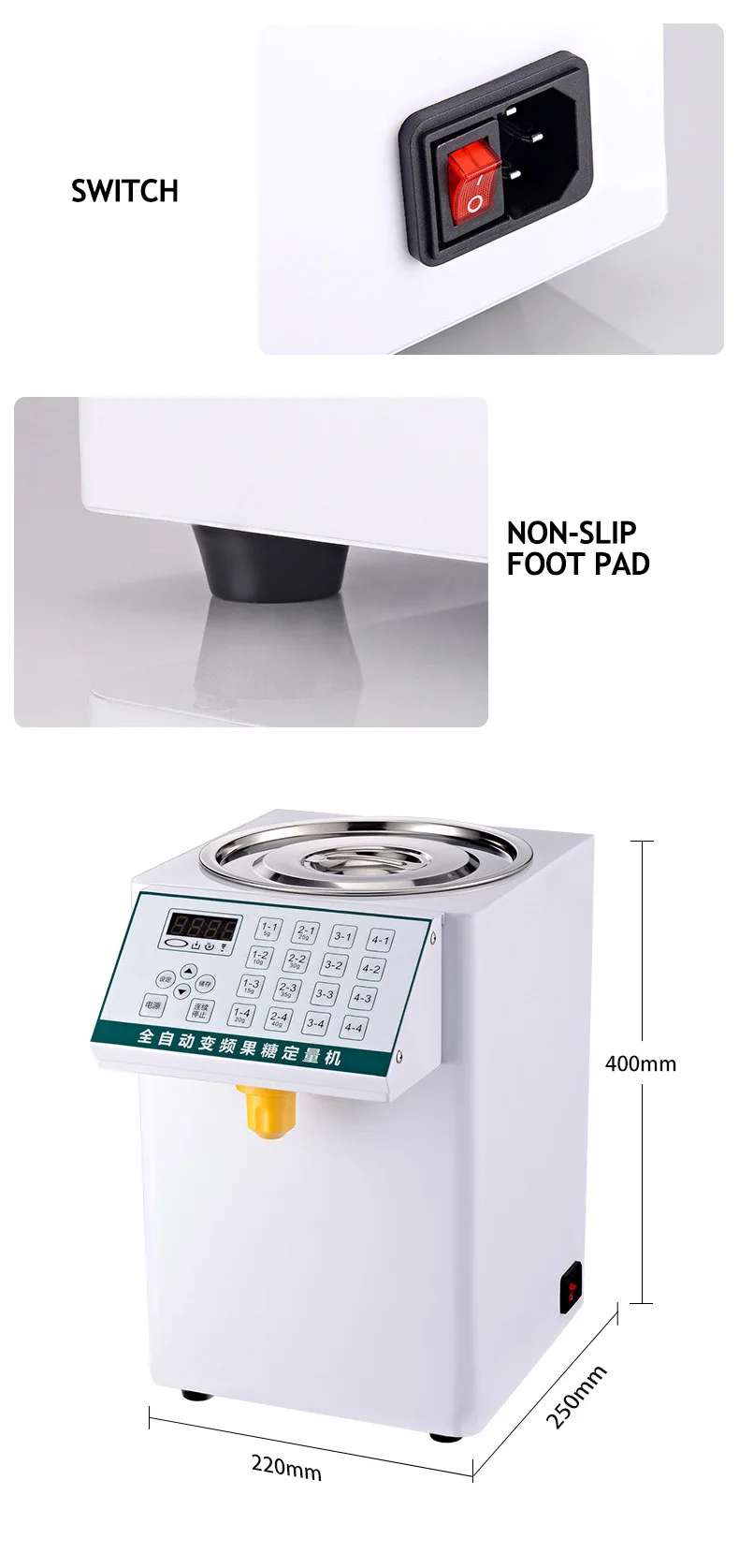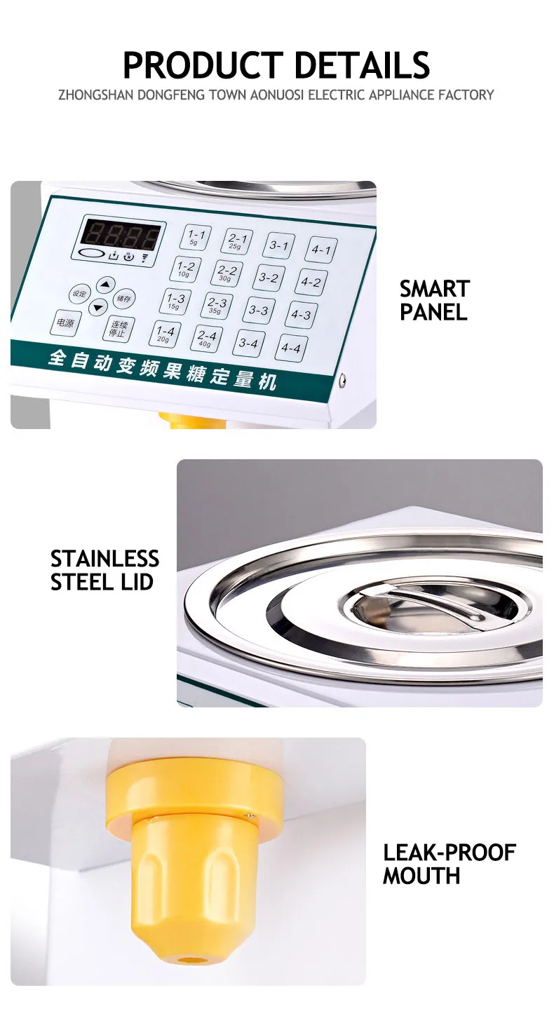 Function | Ma Yun has enough torque: it can be filled with highly viscous liquids, such as fructose, honey, condensed milk, etc.; one-click quick sugar output, accurate sugar output, to ensure a stable taste; drip-proof nozzle design, no sugar, No sugar leakage; different number of buttons can be set to meet various sugar output requirements, saving time and effort |