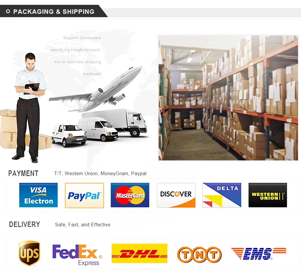 Q4:What is the shipping way?A4:By sea,air,Fedex,DHL,UPS,TNT etc.