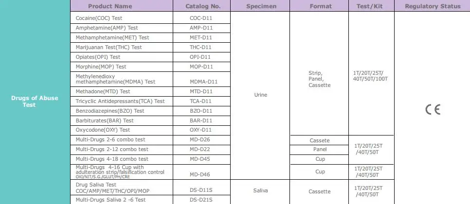 Item No. | Singclean COC AMP MET MOP THC Urine Multi Drugs Test Cassette panel | ||||||