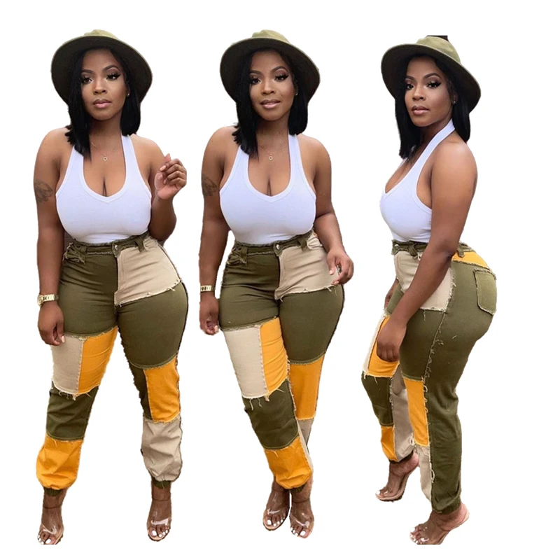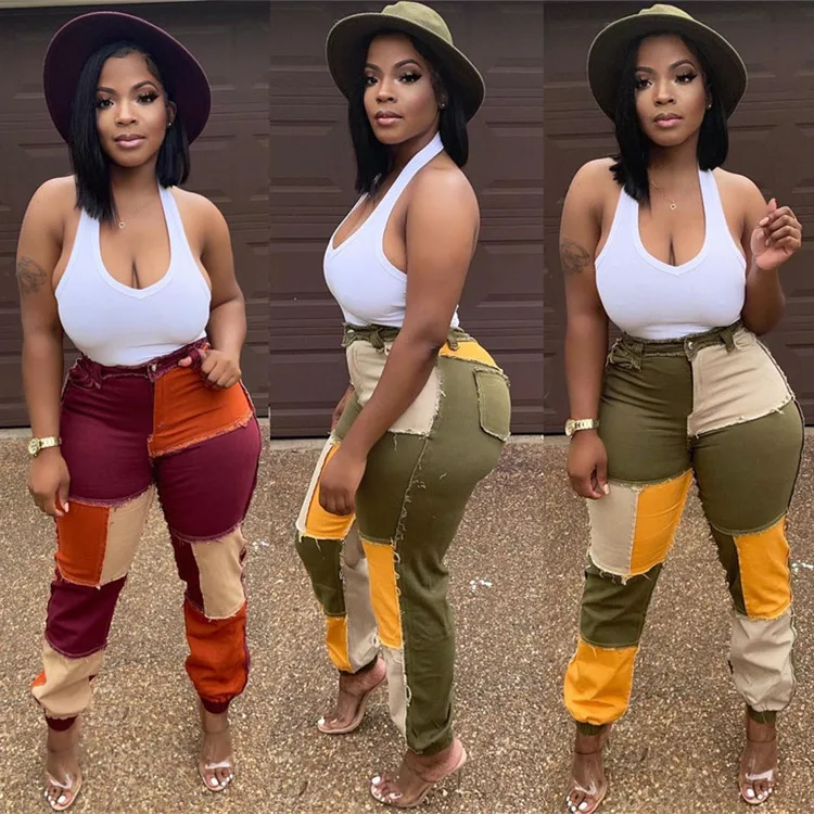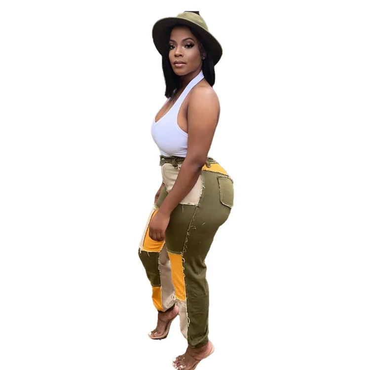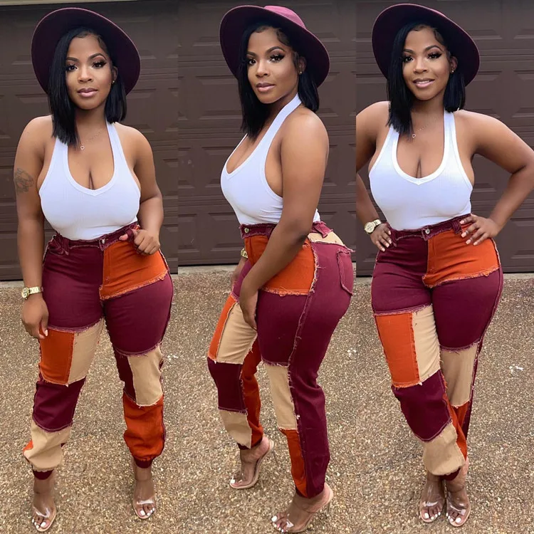 2021 осень и зима новый дизайн патч лоскутные джинсы потертые прямые узкие брюки для