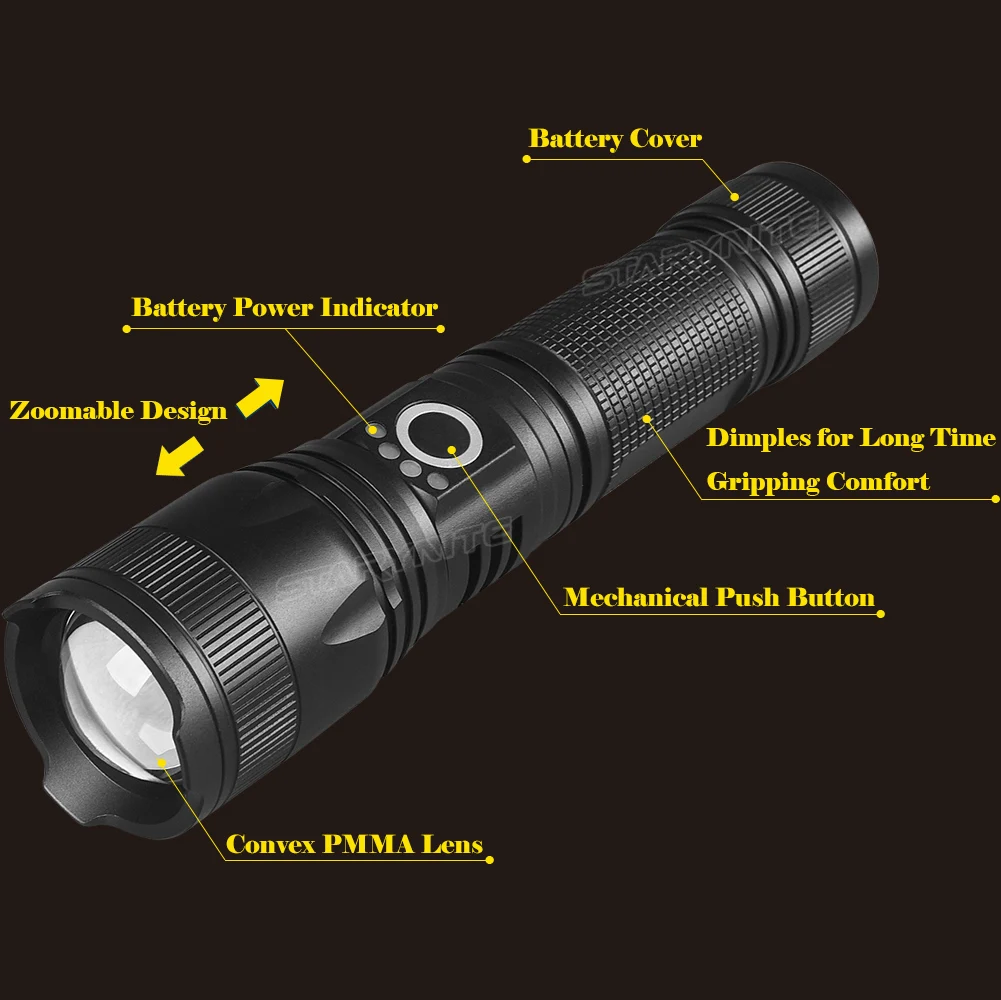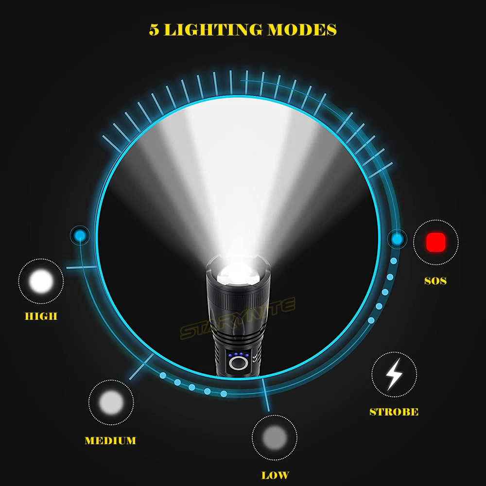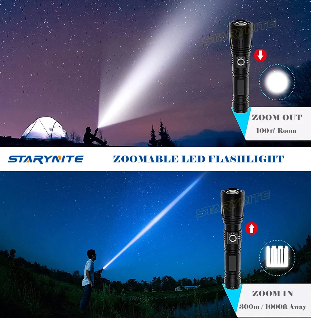 STARYNITE 700 LUMENS POWERFUL ZOOM RECHARGEABLE LED FLASHLIGHT TORCH LIGHT POWERED BY 18650 OR 26650 OR AAA BATTERIES
