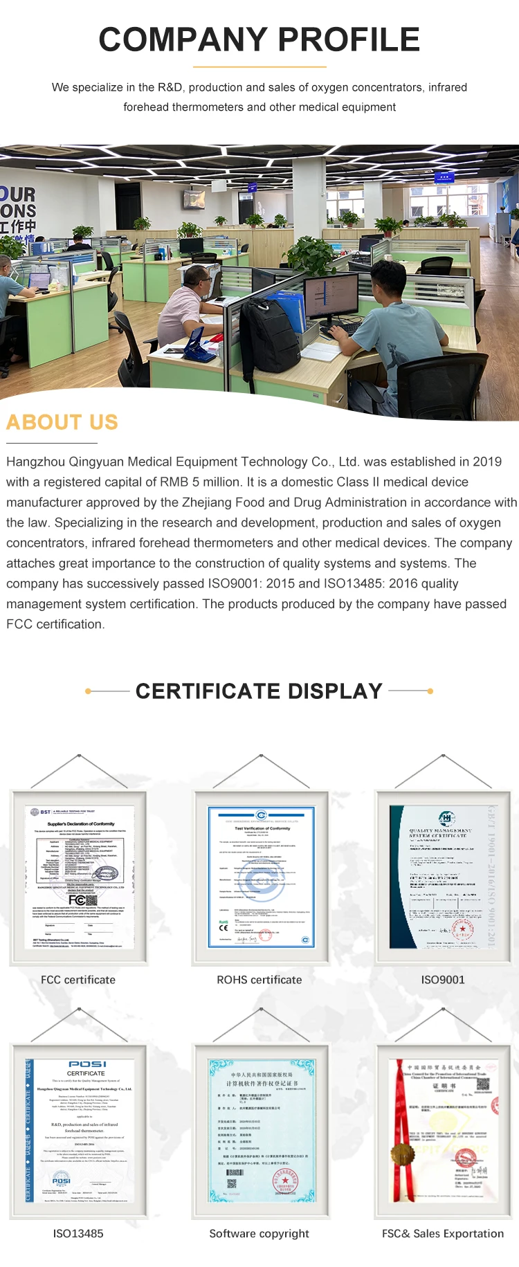 A: We are Hangzhou Qingyuan Medical Equipment Technology Co.,Ltd, whose parent company is Hangzhou AODI Electronic Co.,Ltd。