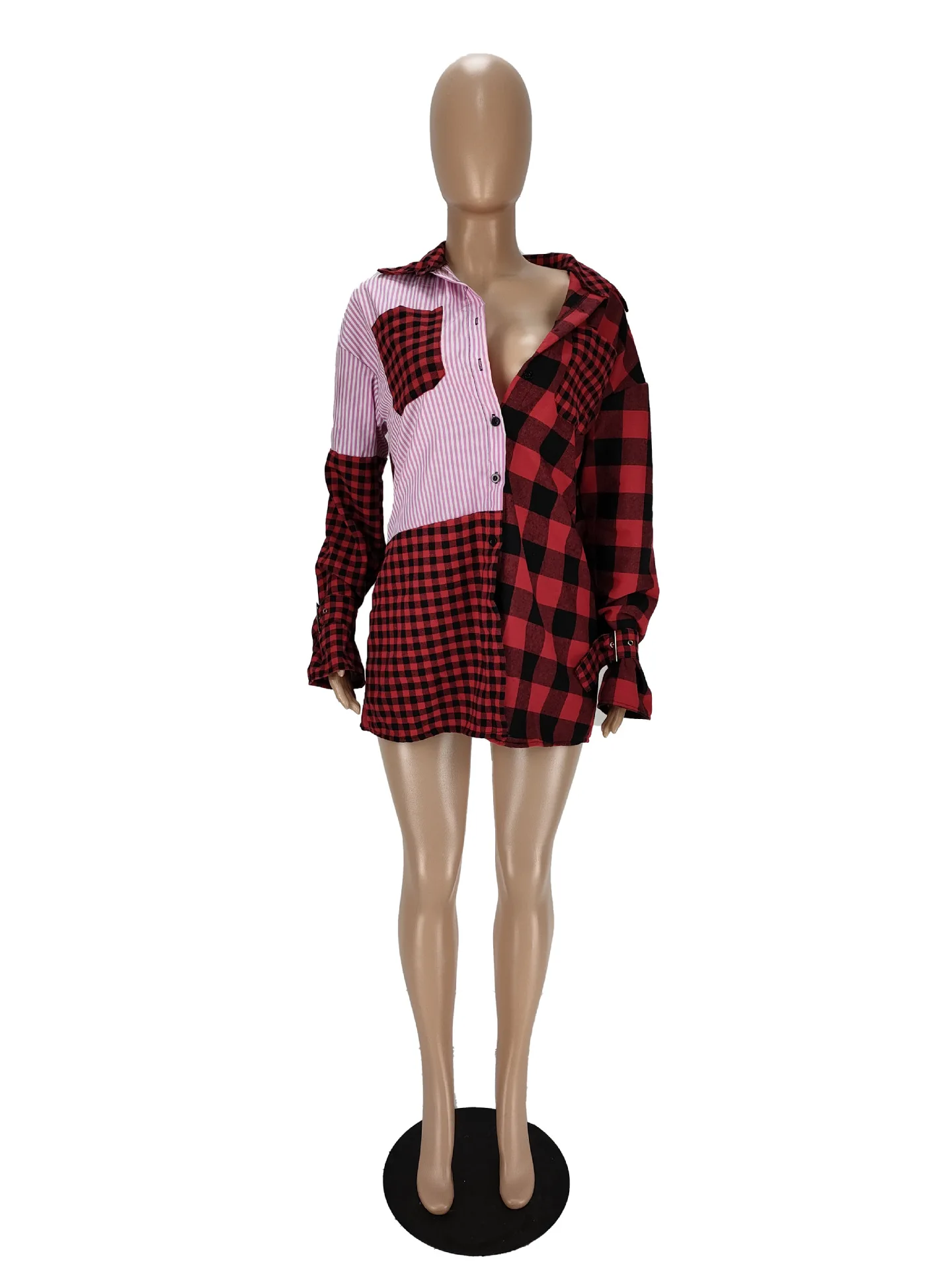Женское атласное платье-трапеция на пуговицах, однотонное Элегантное повседневное платье-мини свободного покроя с V-образным вырезом и длинным рукавом, весна 2021 US $10.50-$11.20