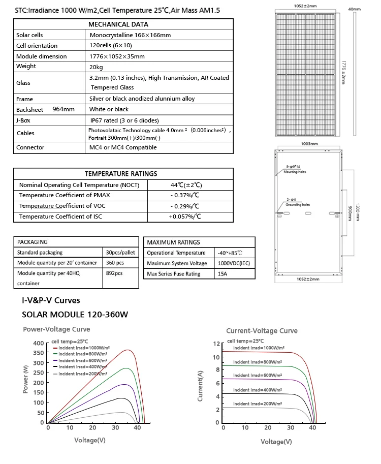 Peak Power Watts-Pmax(Wp) | 350 | 355 | 360 | 365 | 370 | |||||