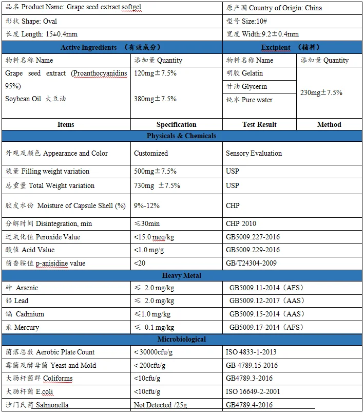 Product Name | Grape seed extract softgel |