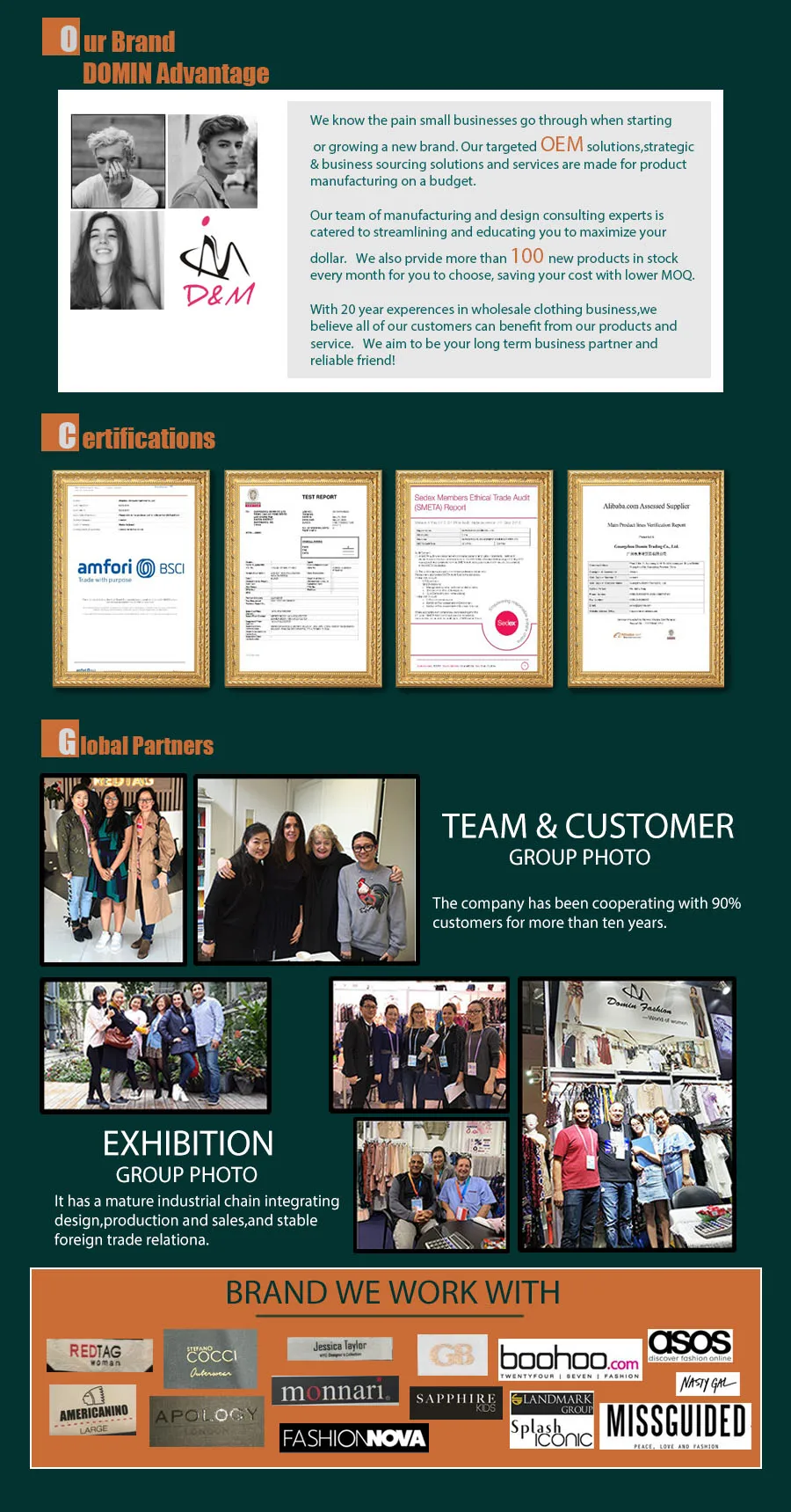 Sample Policy | Our professional R&D team releases many new styles regular to satisfy market demands.(If we are the first cooperation, we need to charge the samples and shipping fee, the sample fee will full return when bulk orders.) | |